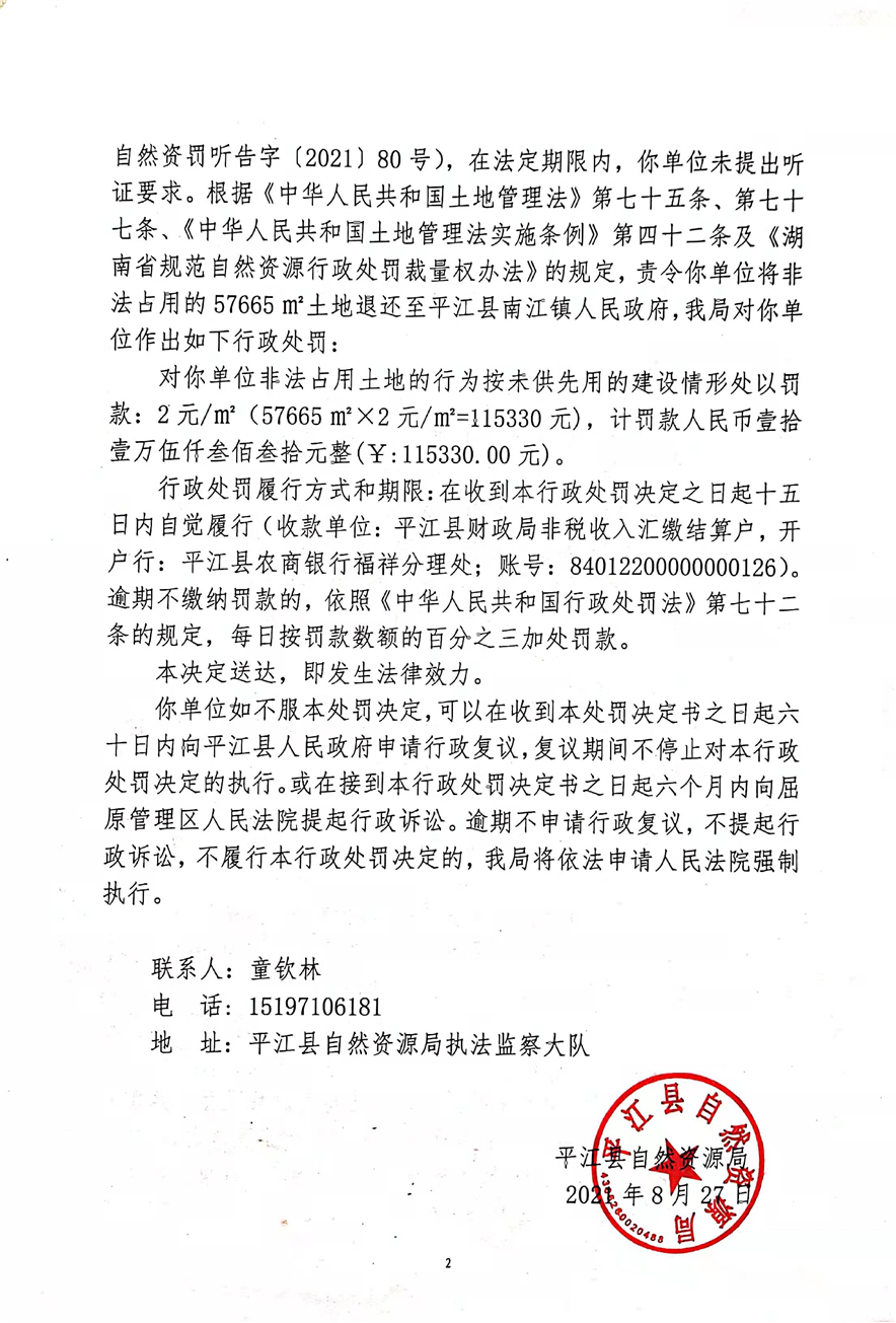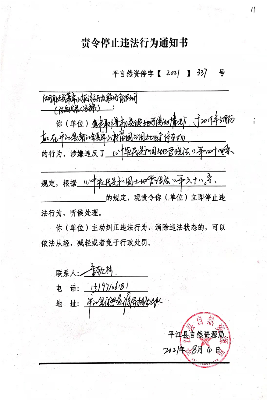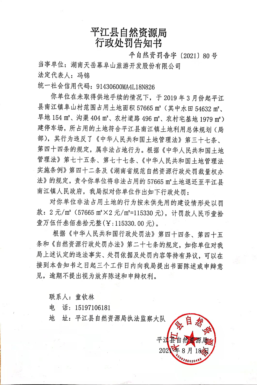 湖南天岳幕阜山旅游开发股份有限公司非法占地