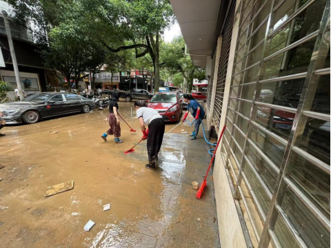 近期,受持续强降雨影响,平江县遭遇有气象记录以来持续时间最长、强度最大、雨量最多的一次汛情,城区水位破70年记录,多地出现山体滑坡,道路中断、房屋垮塌、洪水漫溢等灾情,平江县住房公积金中心一楼业务大厅周边路段也遭受严重进水,水深高度达2米。7月3日,暴雨过后,内涝渐退,淤泥遍布,一片狼藉。岳阳市住房公积金管理中心平江县管理部扛牢担当,迅速行动,组织带领全体干部职工成立“灾后重建先锋队”,开展灾后清理工作,尽快恢复城市面貌、管理部正常运作和群众正常生产生活。