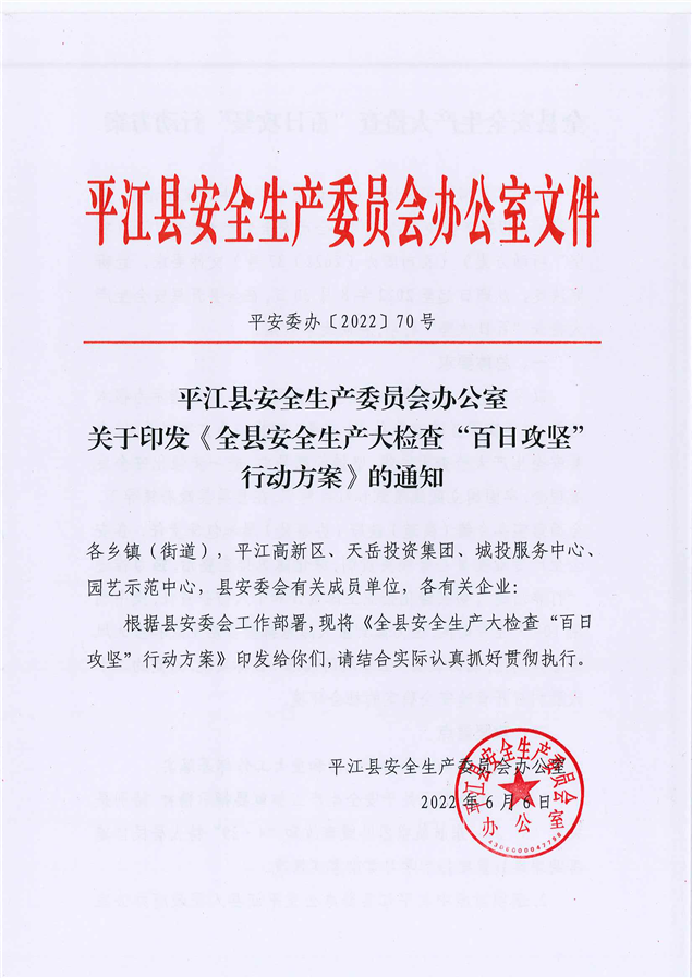 关于印发《全县安全生产大检查“百日攻坚”行动方案》的通知