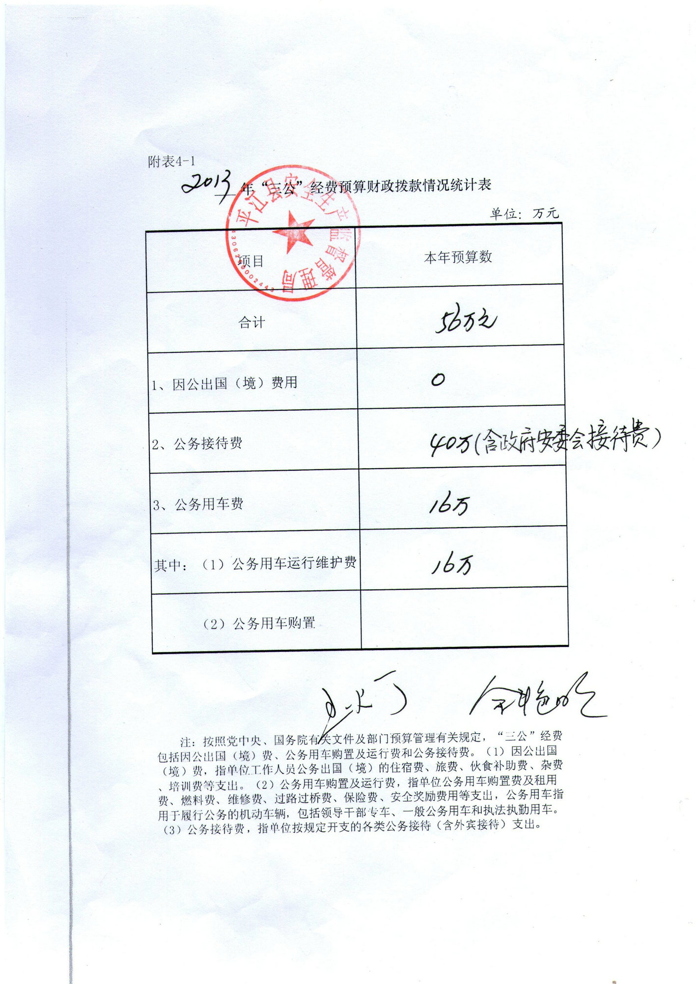 县安监局2013年度“三公”经费预算公开