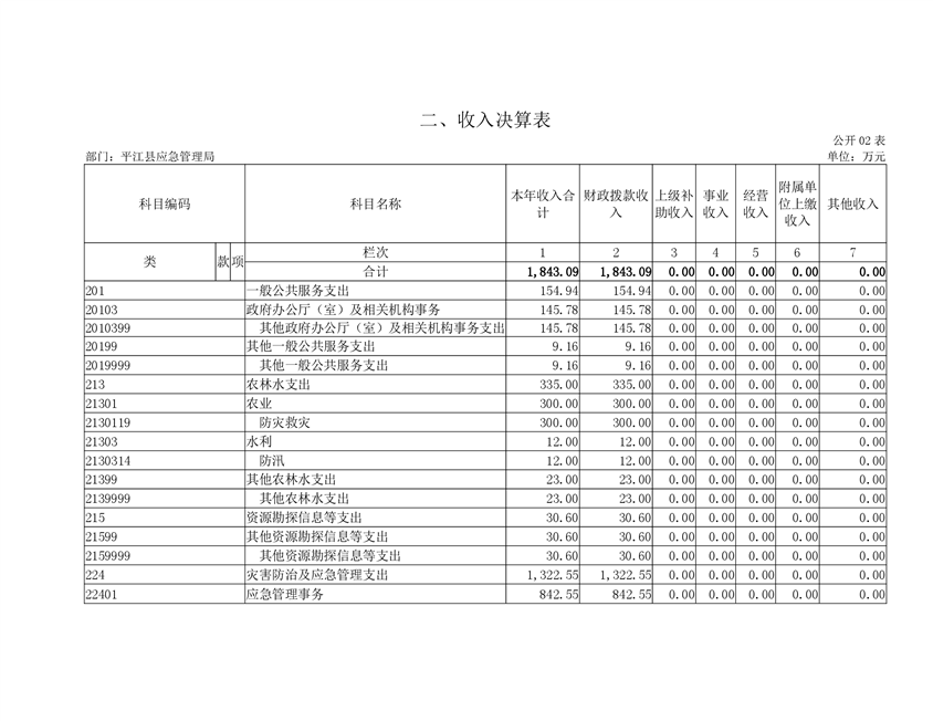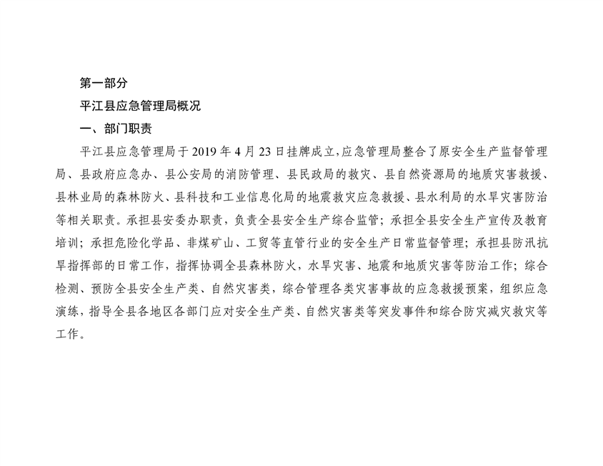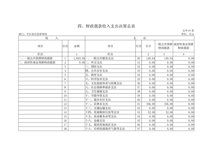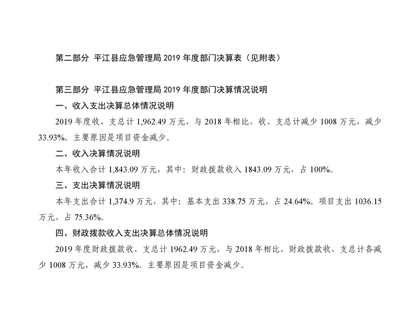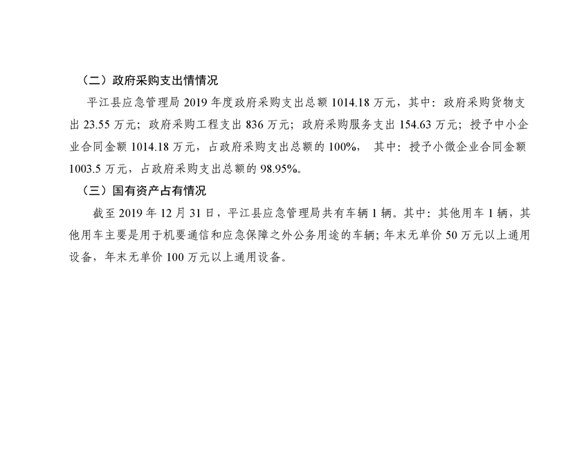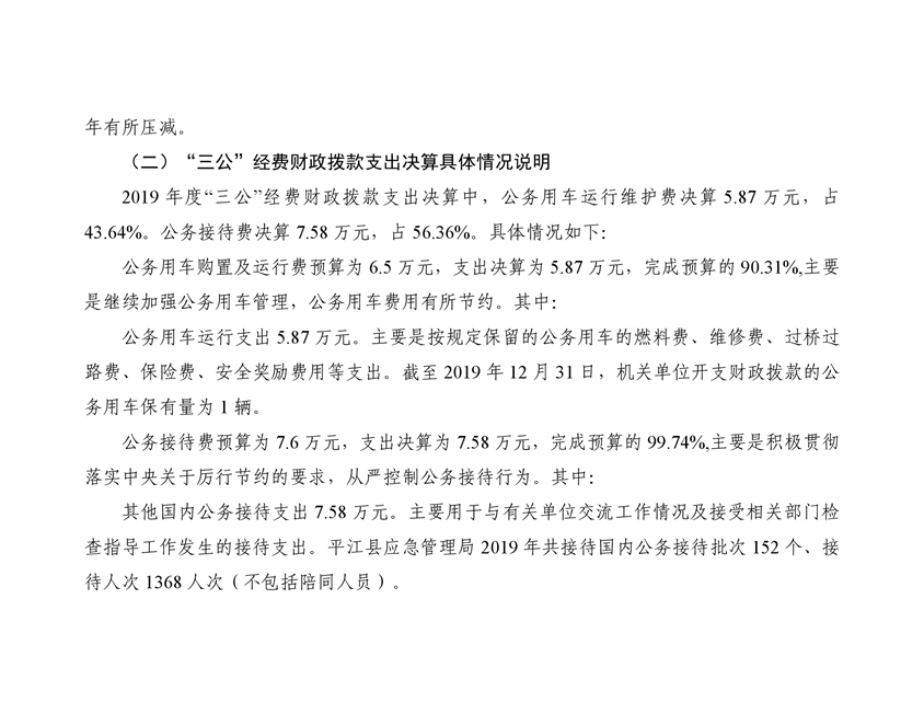 平江县应急管理局2019年度部门决算