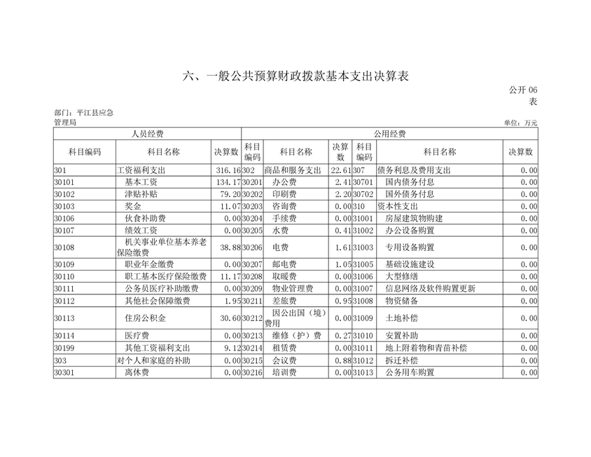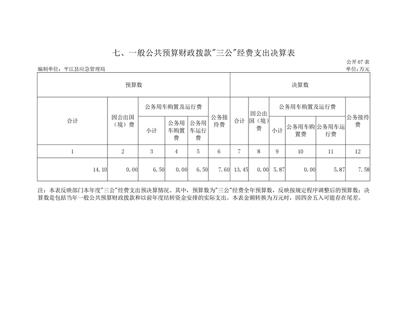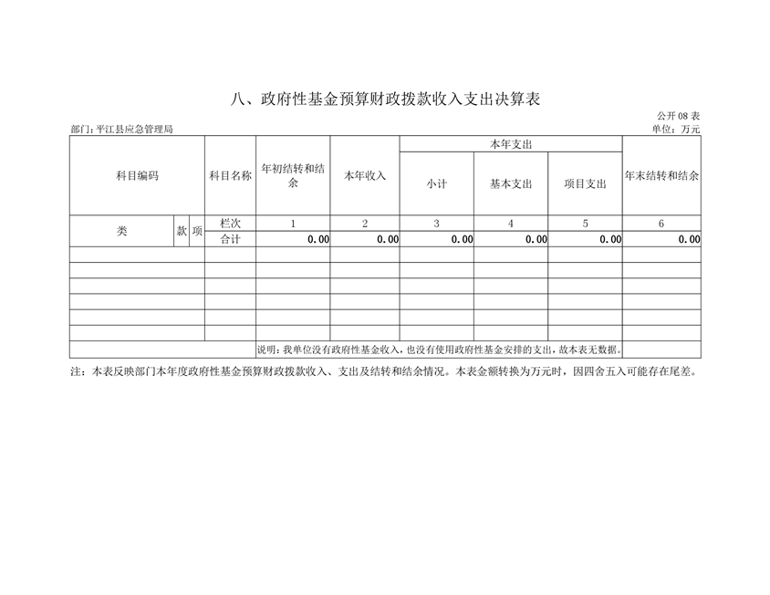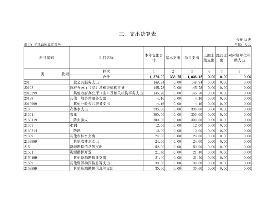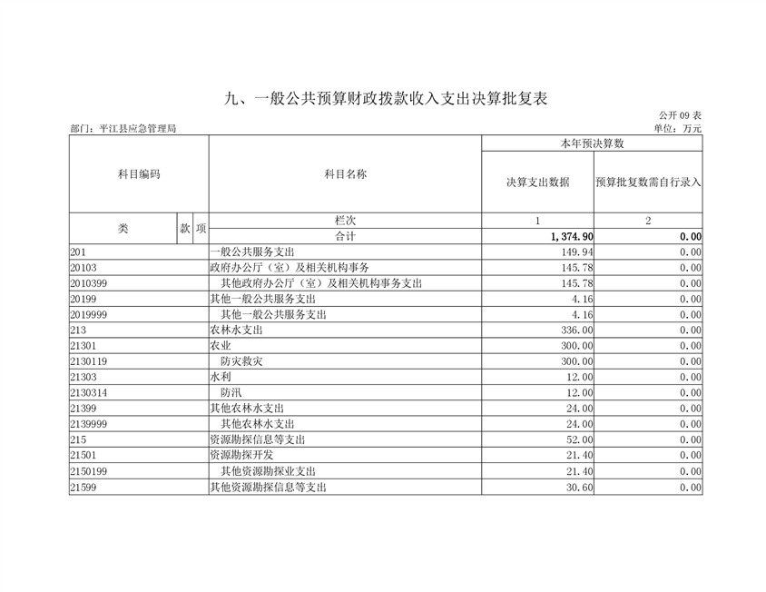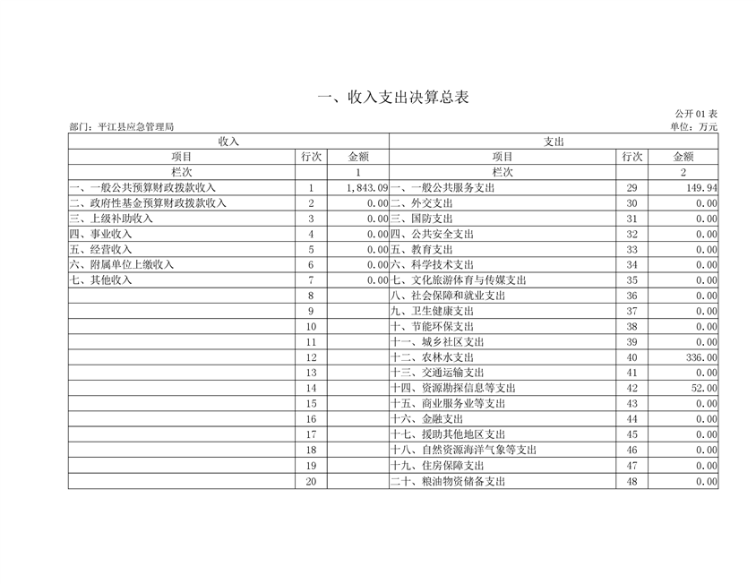 平江县应急管理局2019年度部门决算