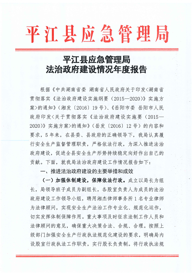 平江县应急管理局法治政府建设情况年度报告