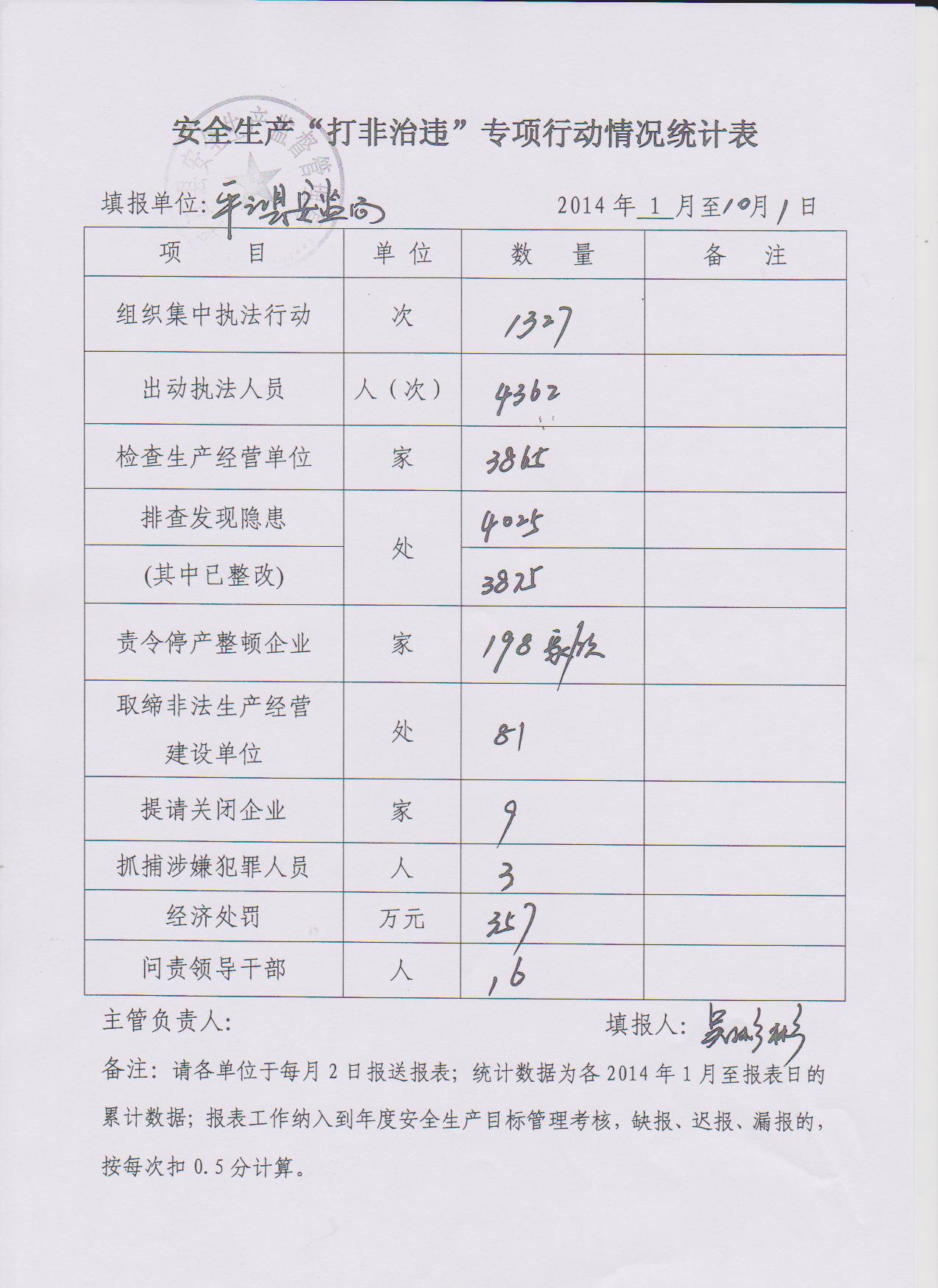 安全生产“打非治违”专项行动情况统计表