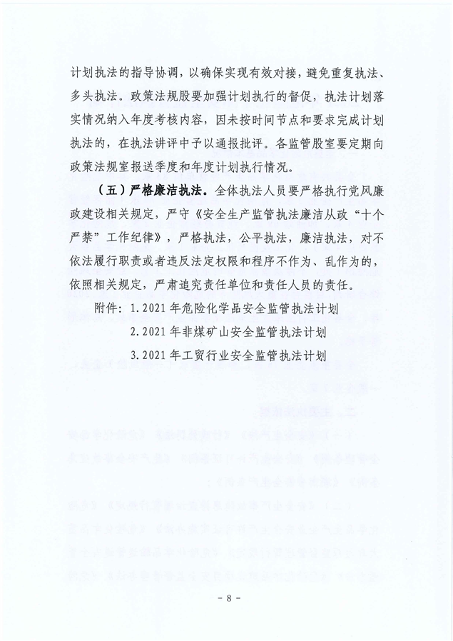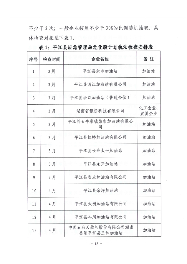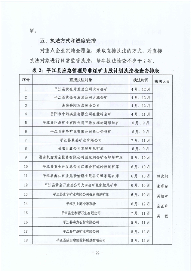 关于印发《平江县应急管理局2021年度安全生产监管执法计划》的通知