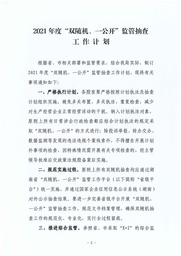关于印发《2021年度“双随机、一公开”监管抽查工作计划》的通知