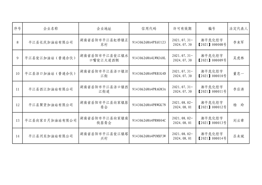 2021年平江县应急管理局行政许可情况