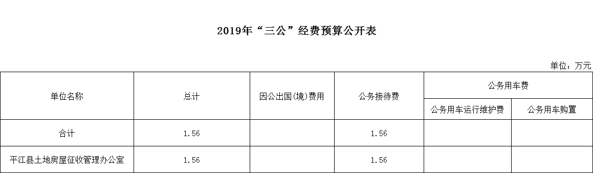 平江县土地房屋征收管理办公室2019年“三公”经费预算公开