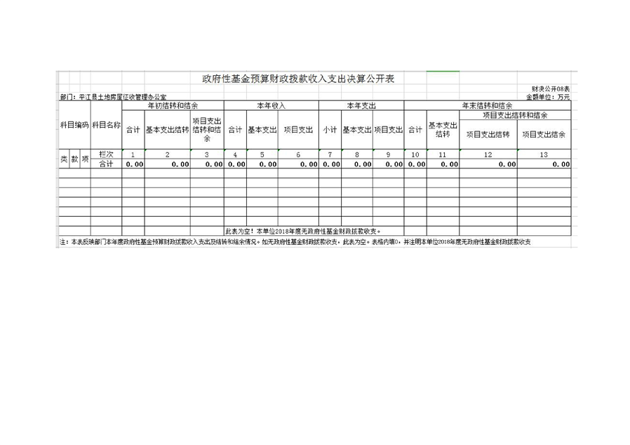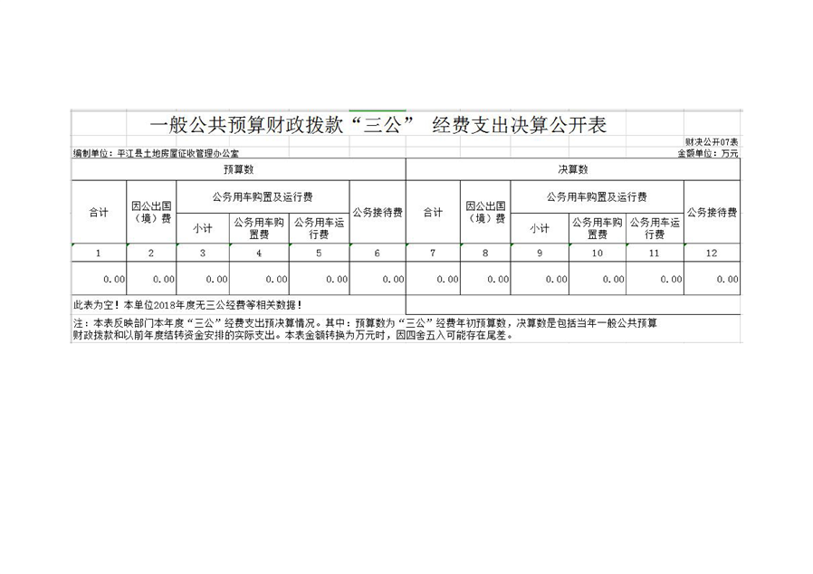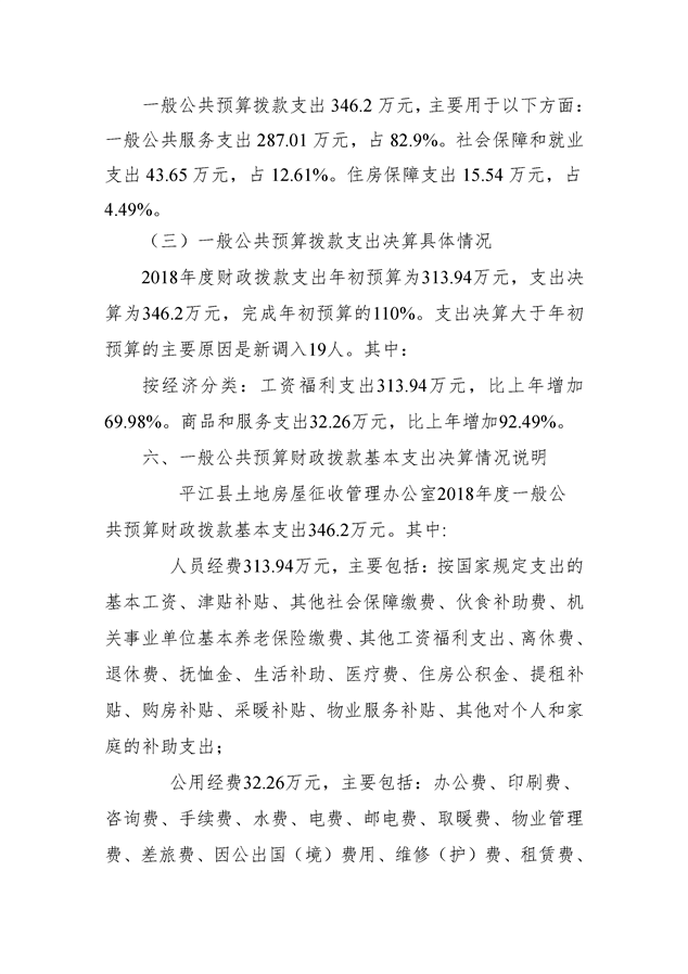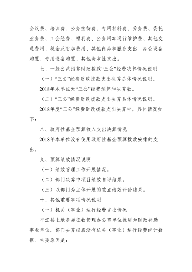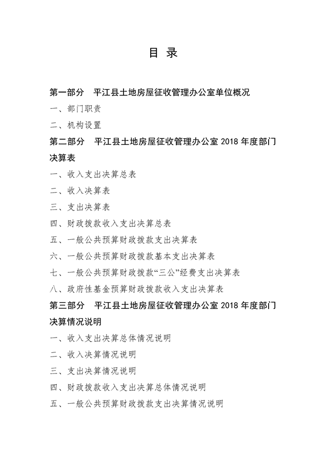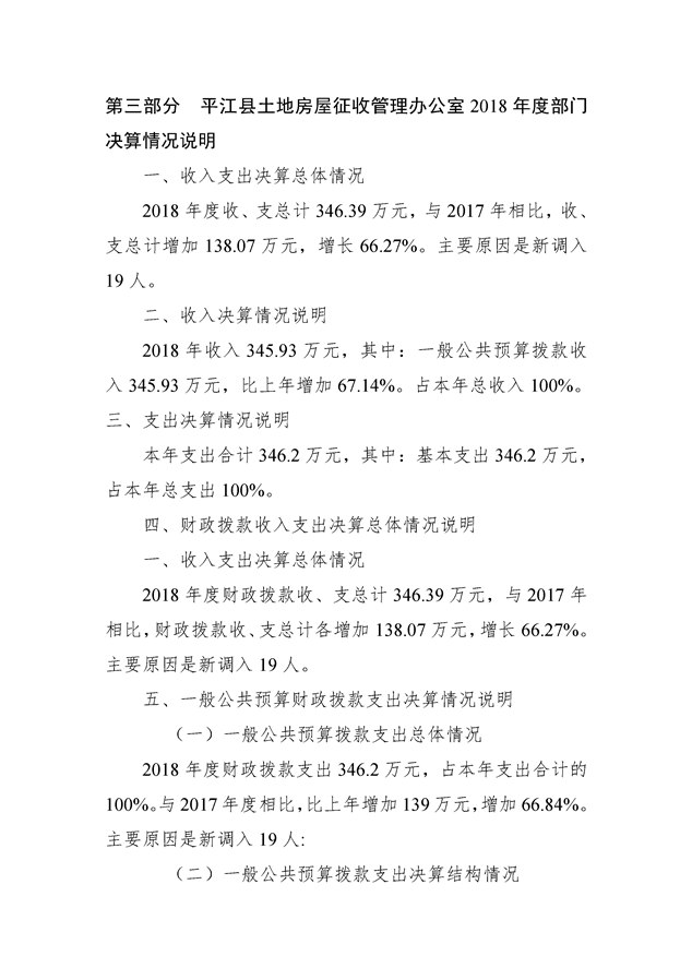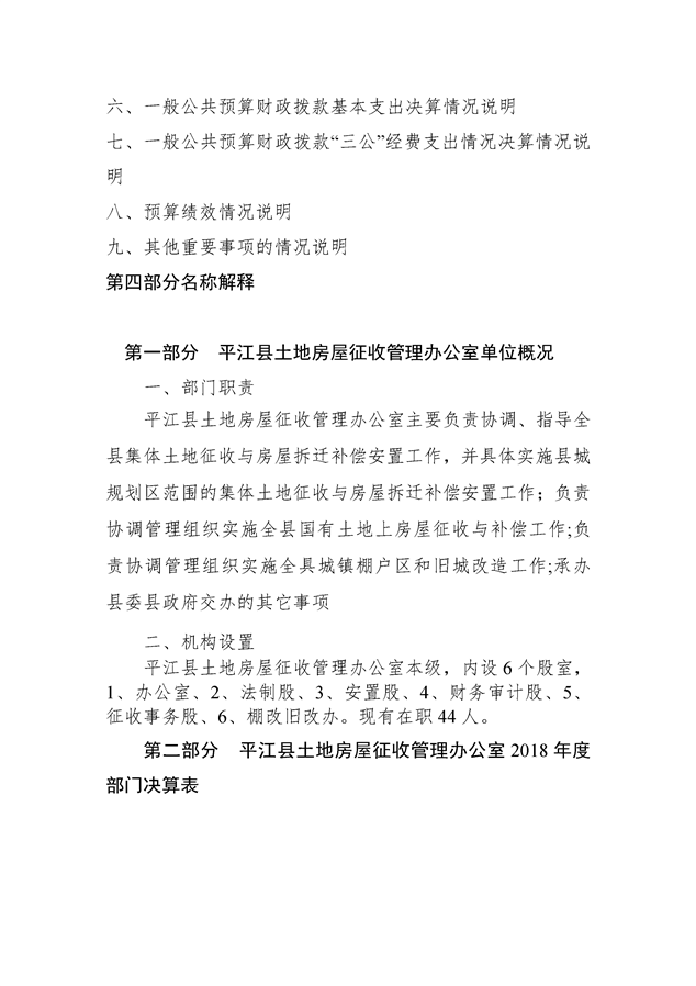 平江县土地房屋征收管理办公室2018年度部门决算编报说明