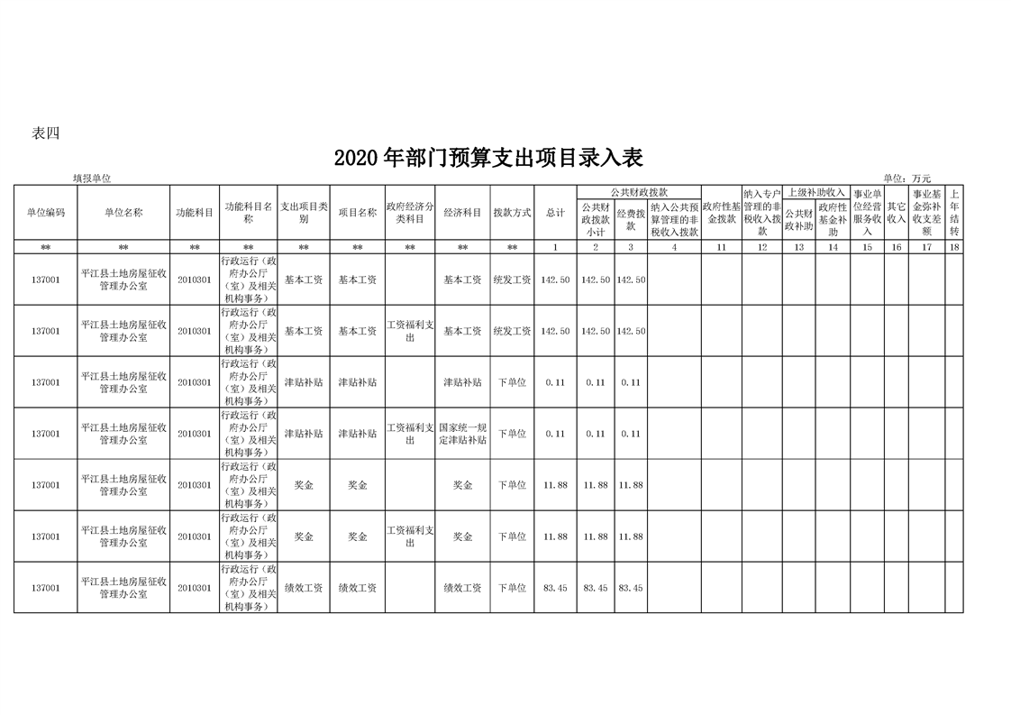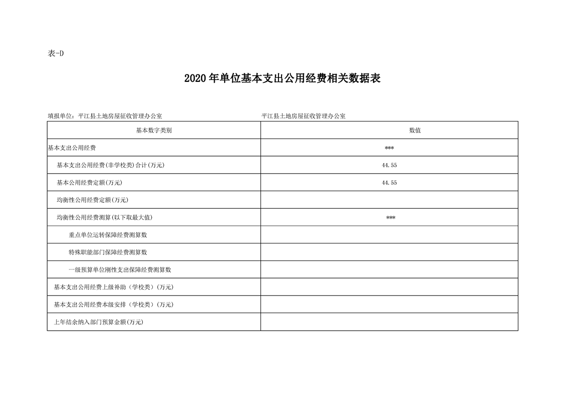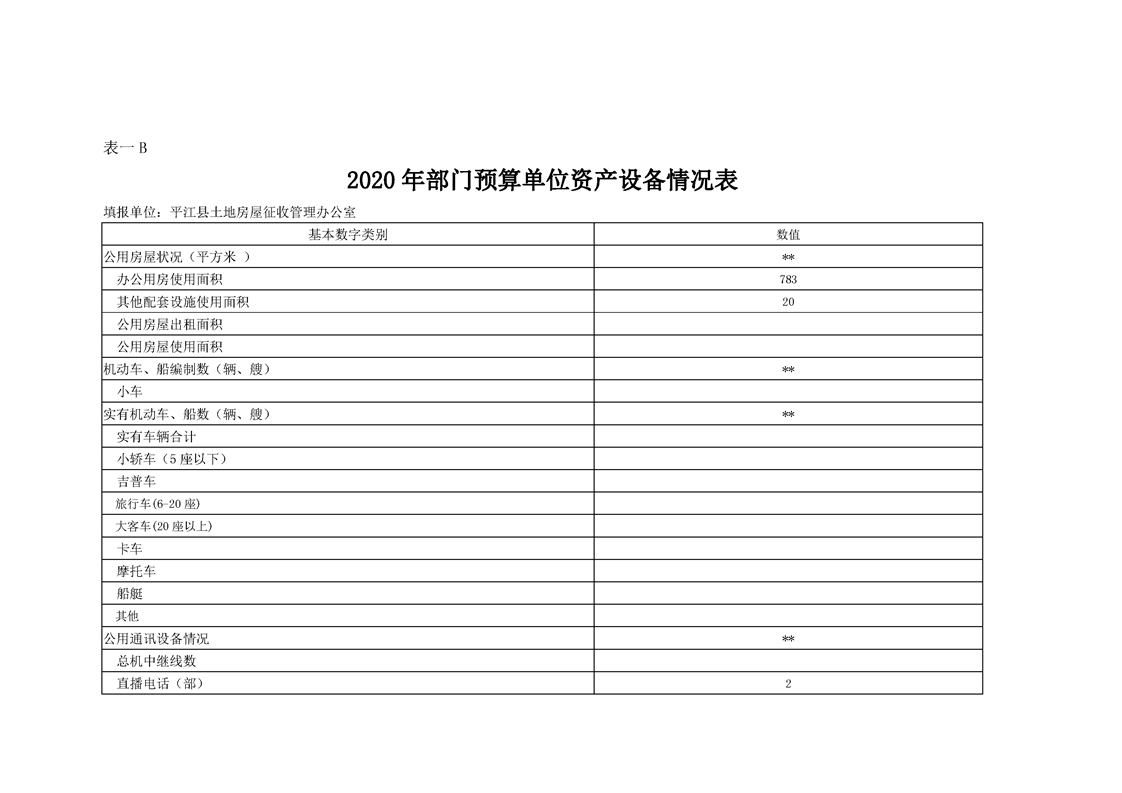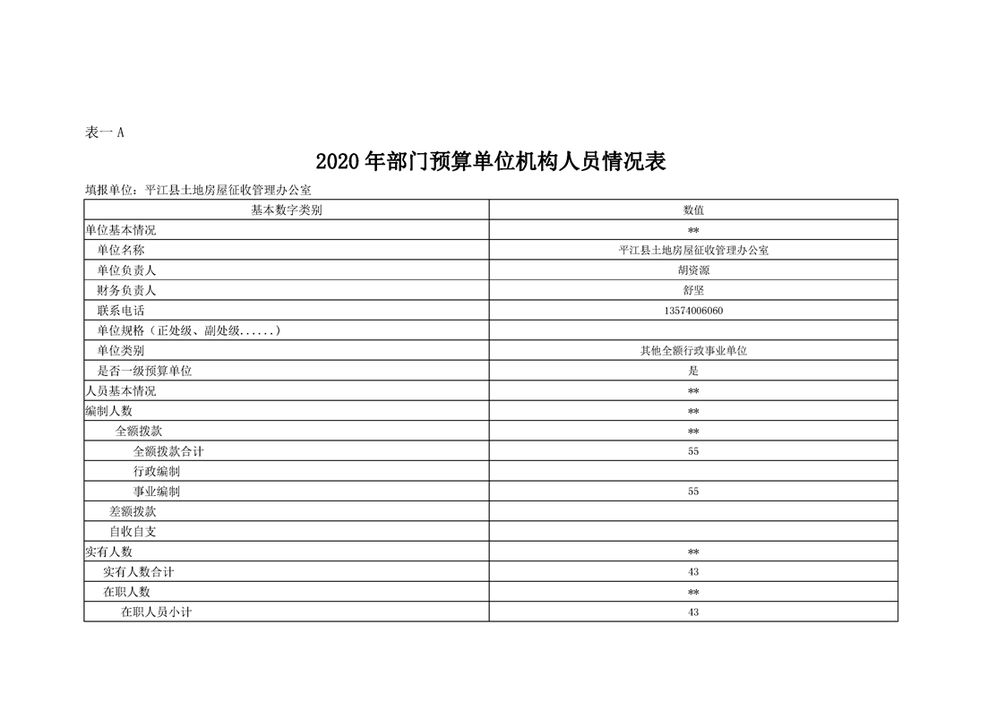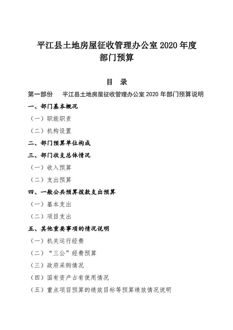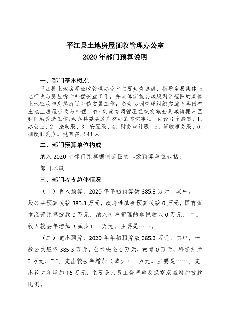 平江县土地房屋征收管理办公室2020年度部门预算