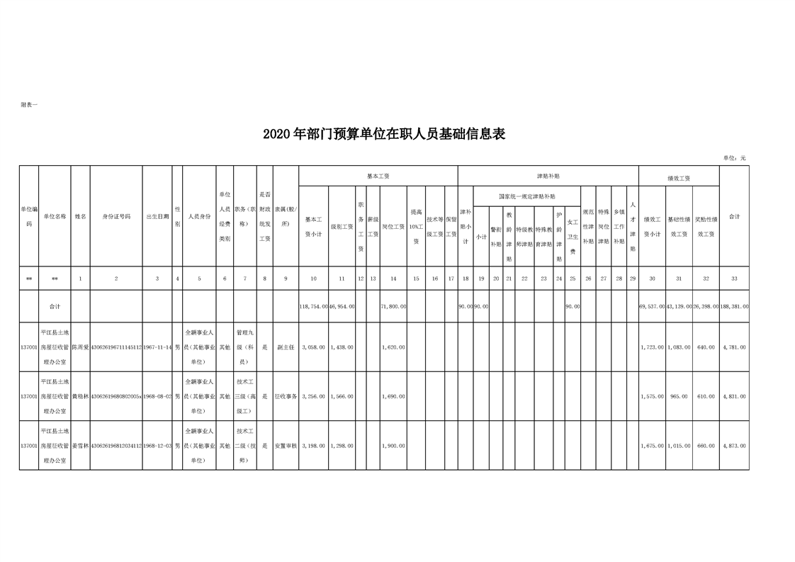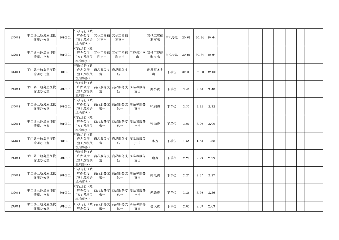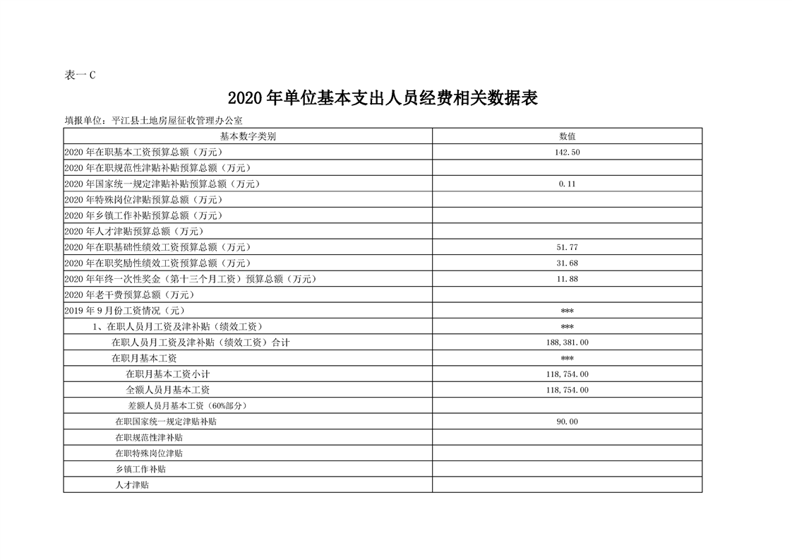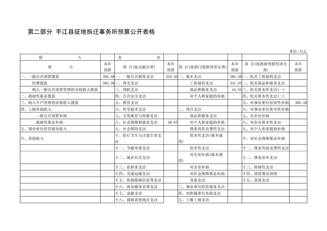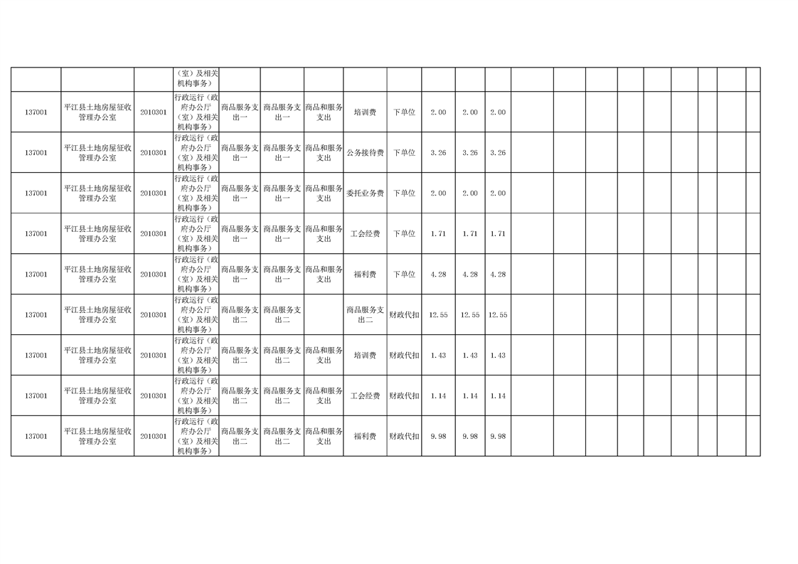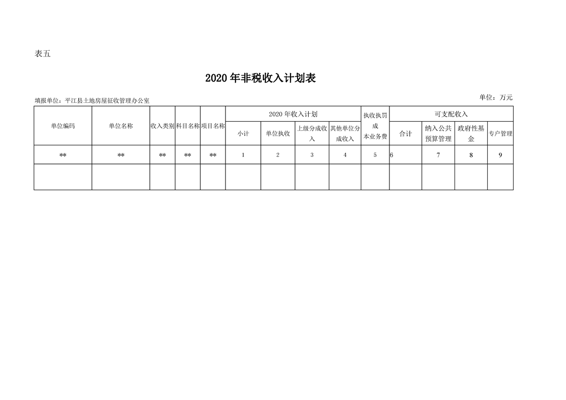 平江县土地房屋征收管理办公室2020年度部门预算