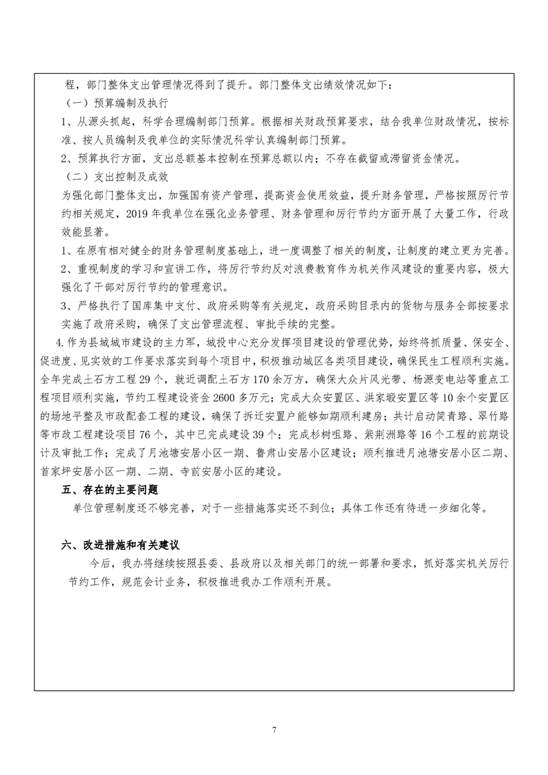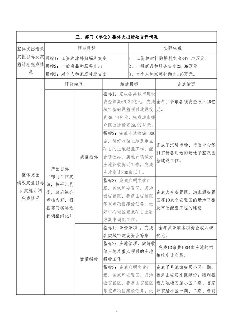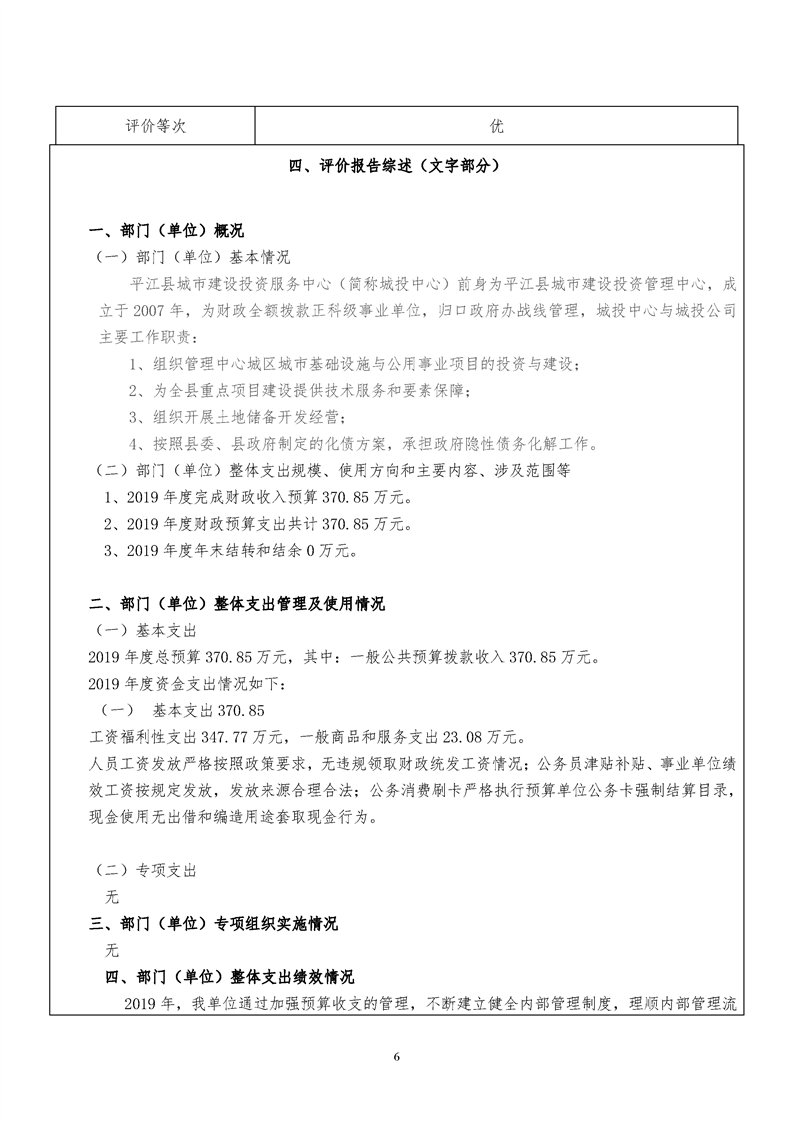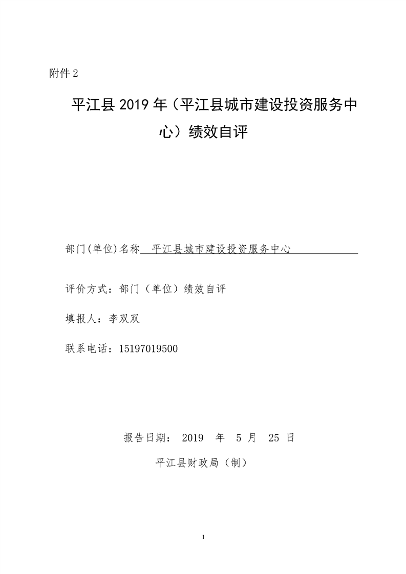 平江县 2019 年(平江县城市建设投资服务中心)绩效自评