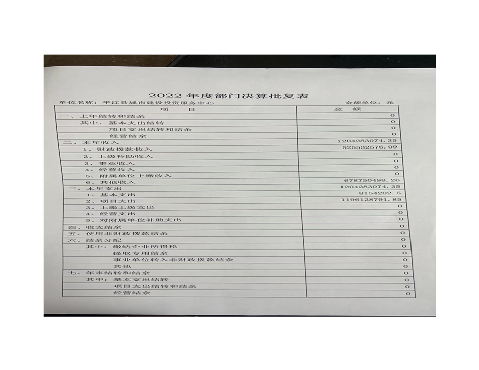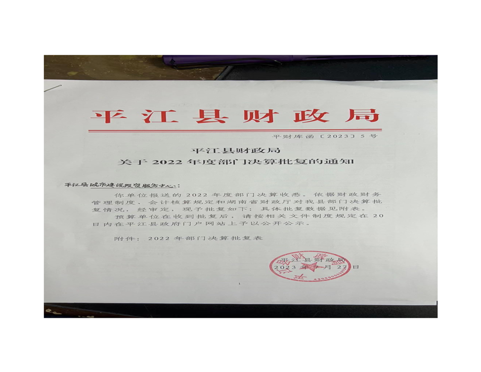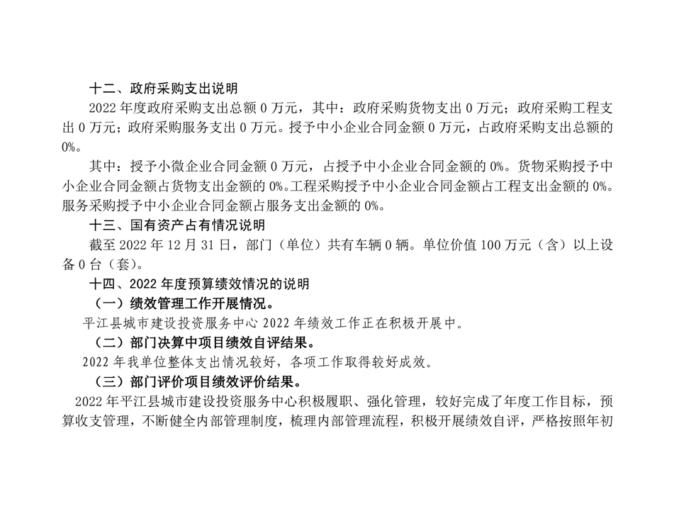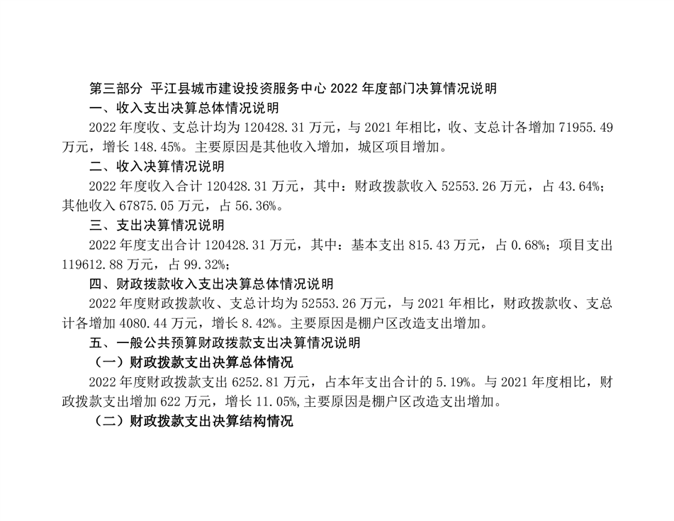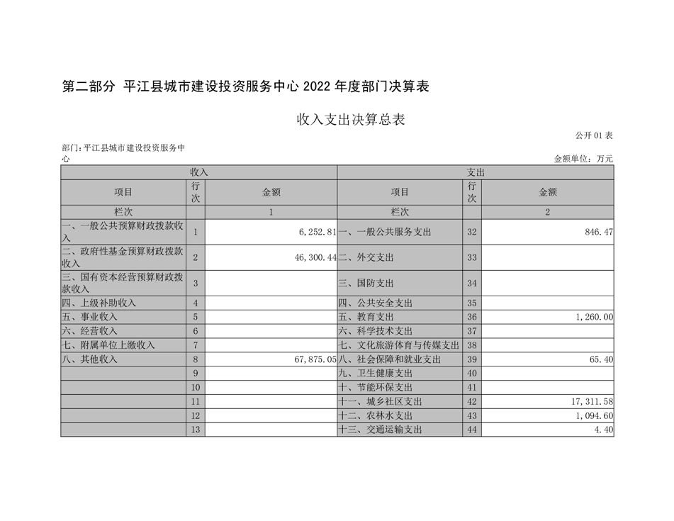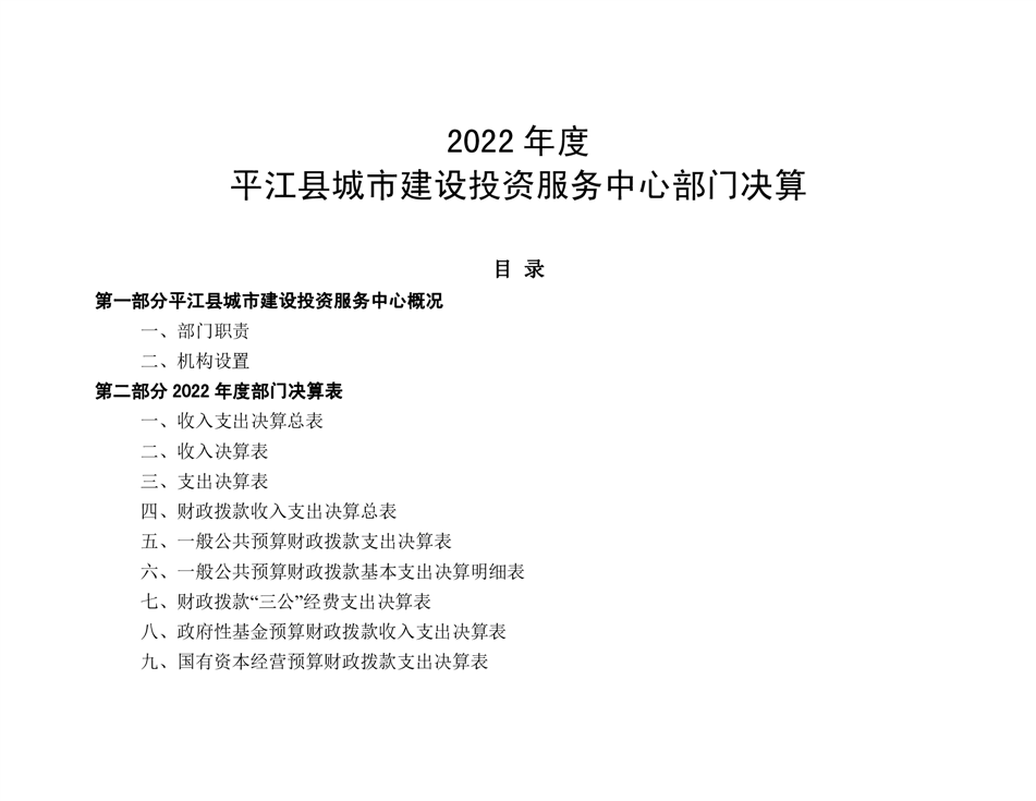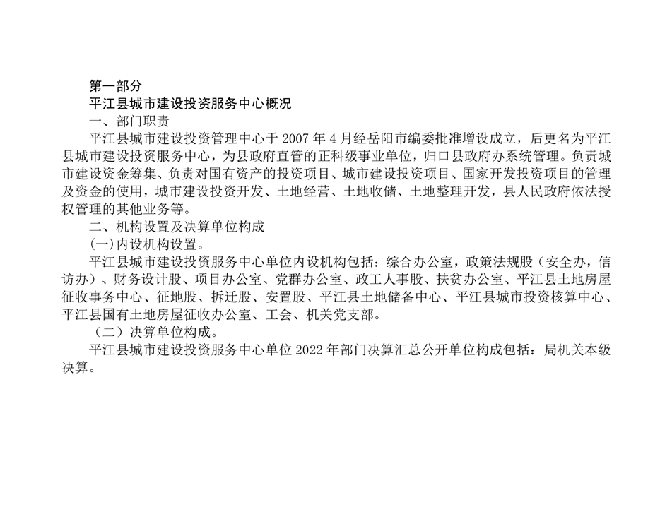 平江县城市建设投资服务中心2022年部门决算公开