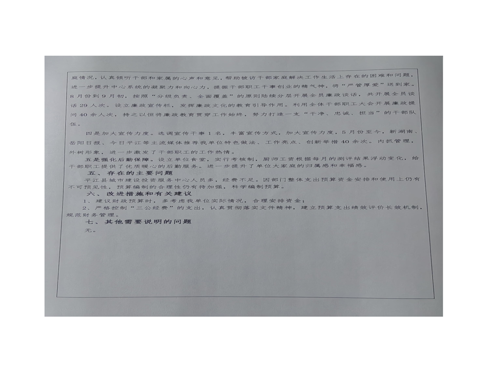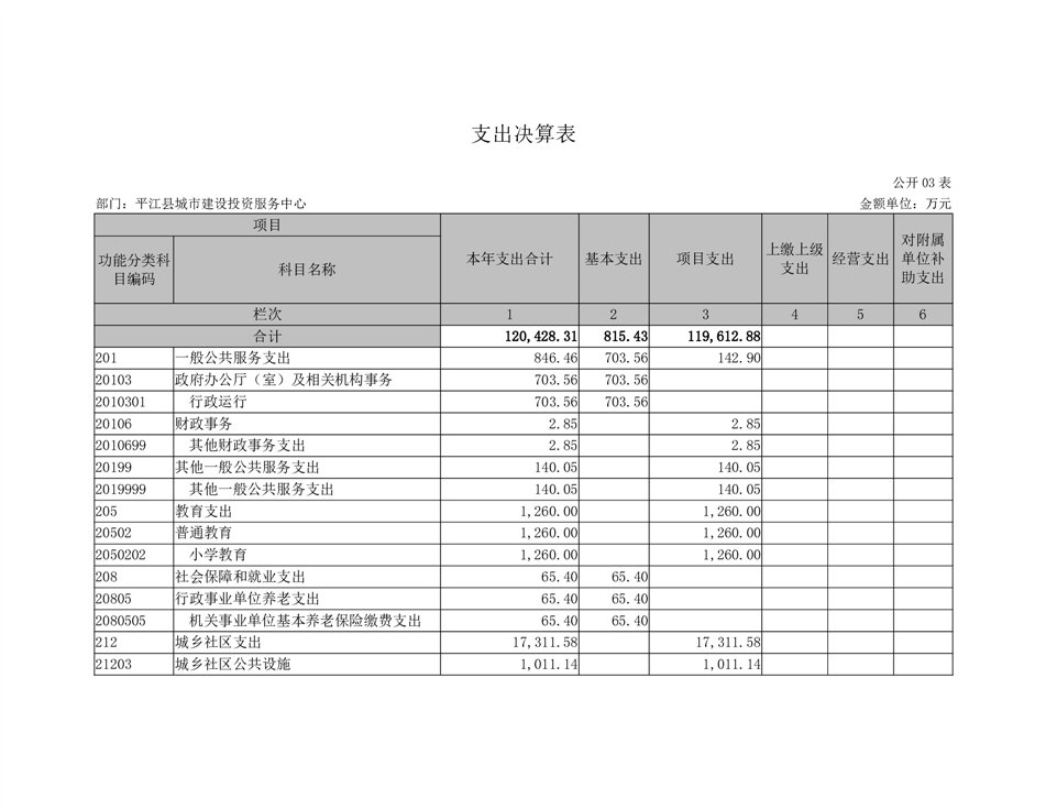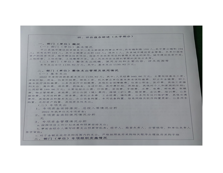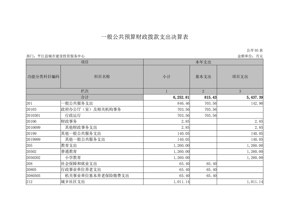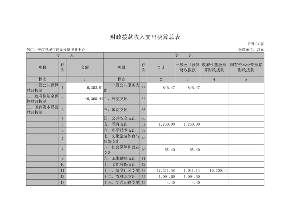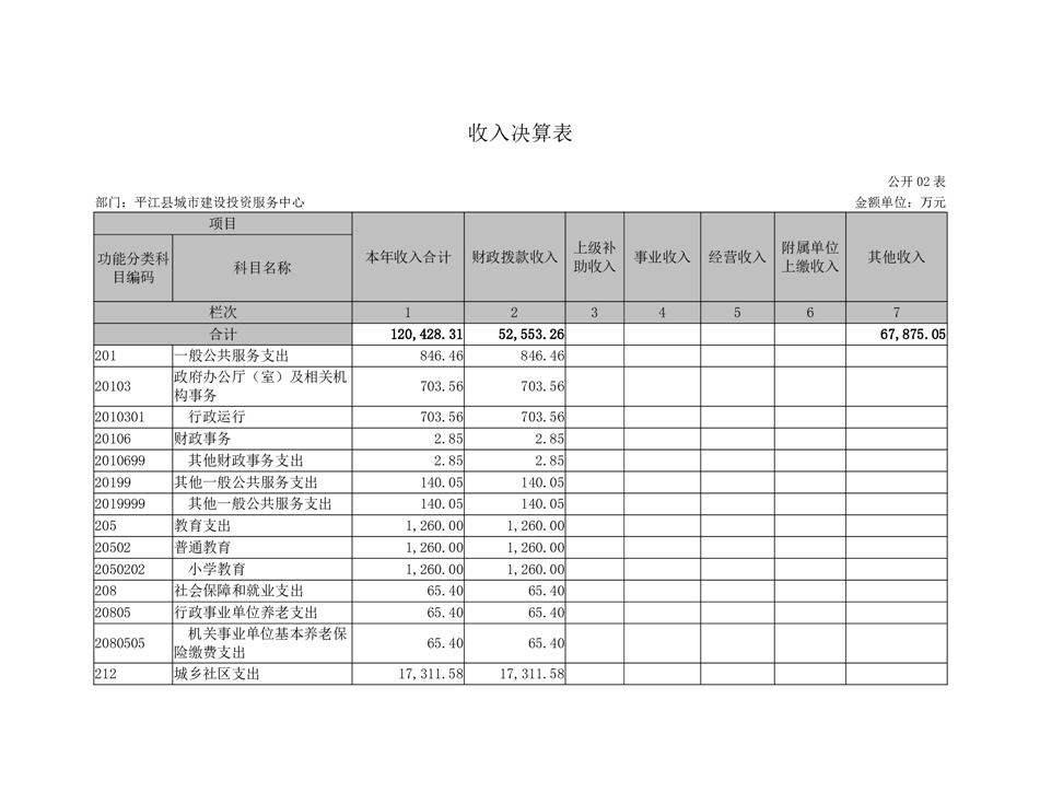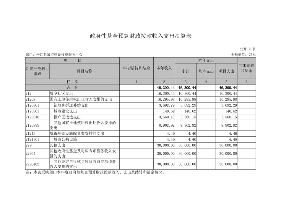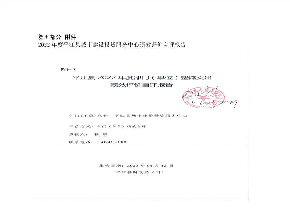 平江县城市建设投资服务中心2022年部门决算公开