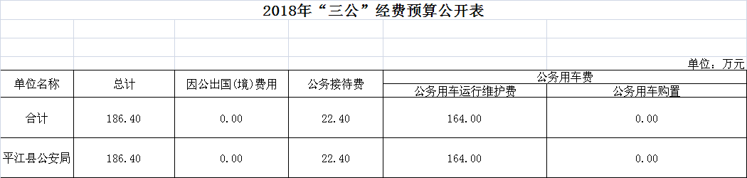 平江县公安局2018年“三公”经费预算公开表