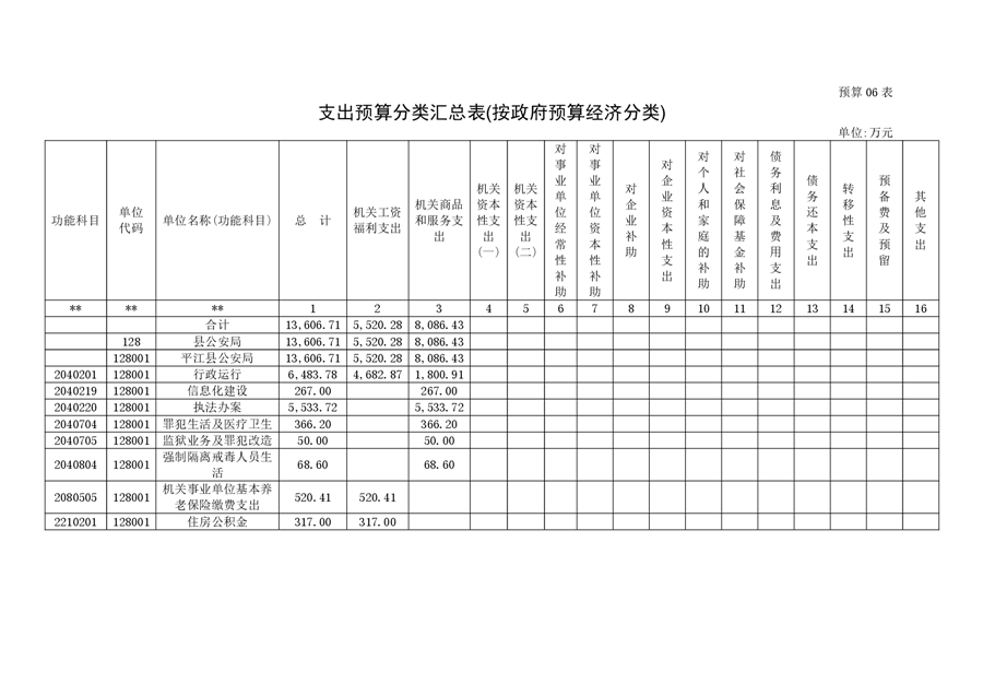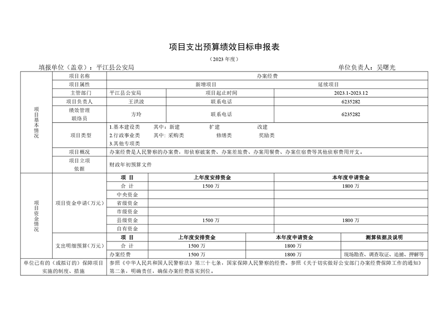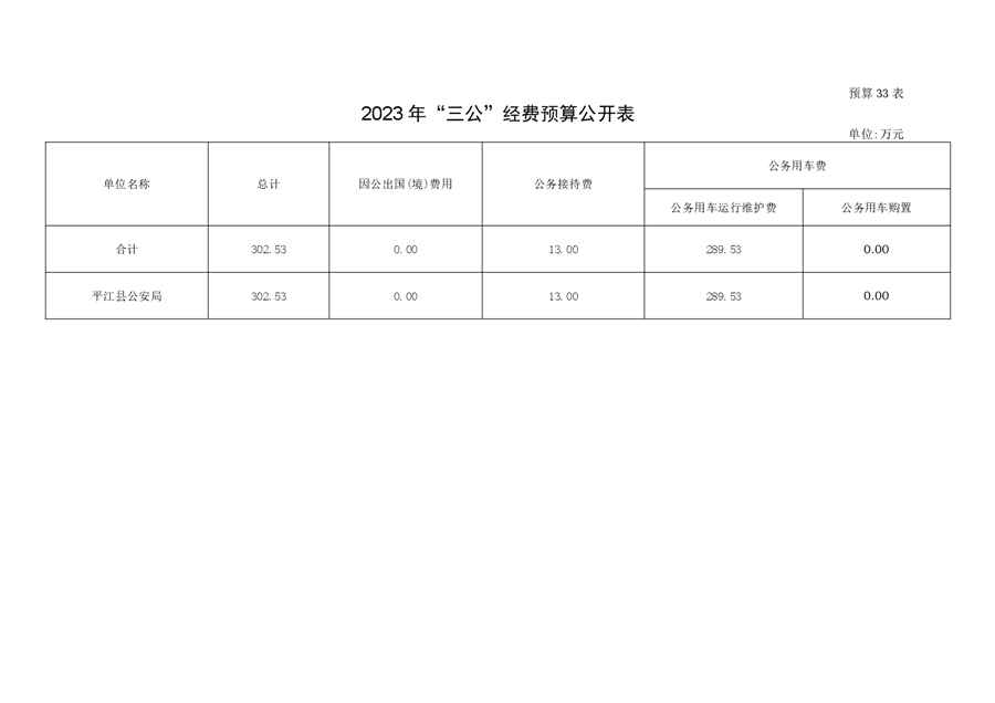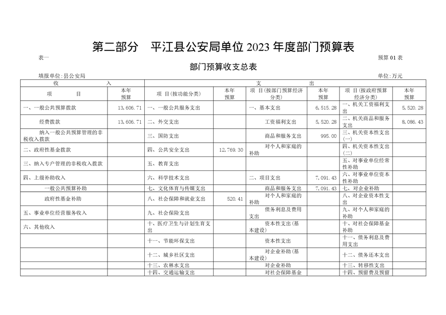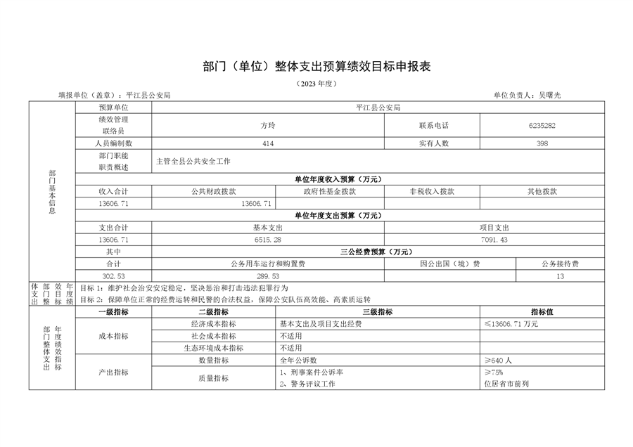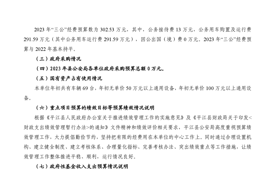 平江县公安局2023年部门预算