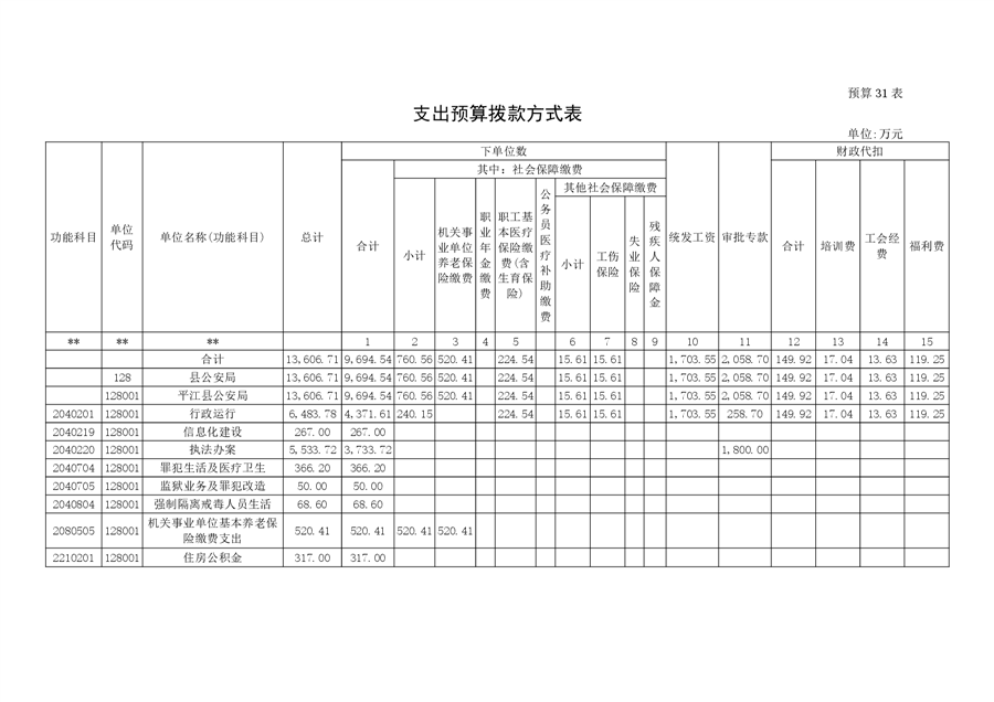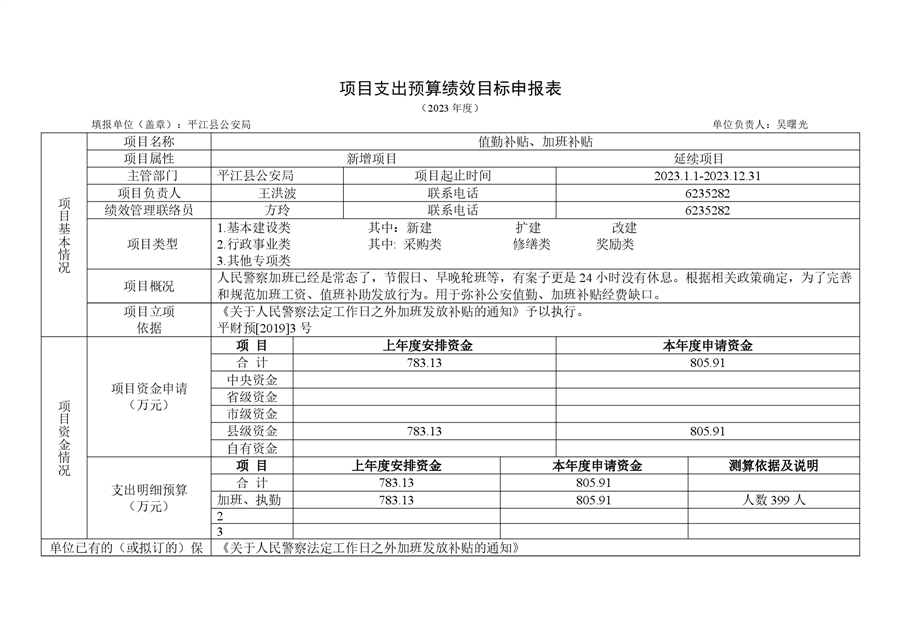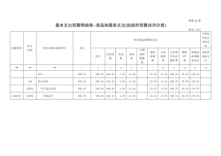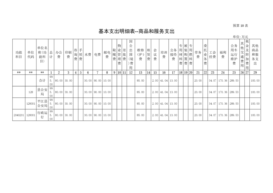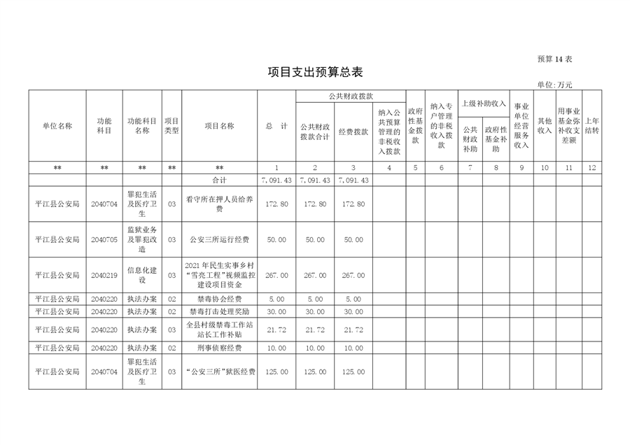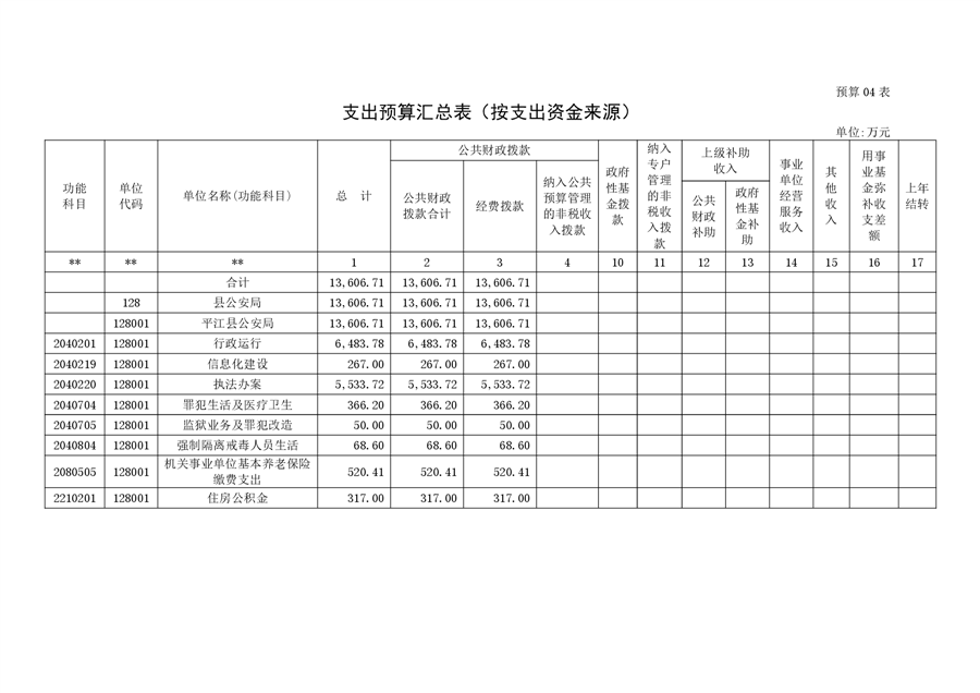 平江县公安局2023年部门预算