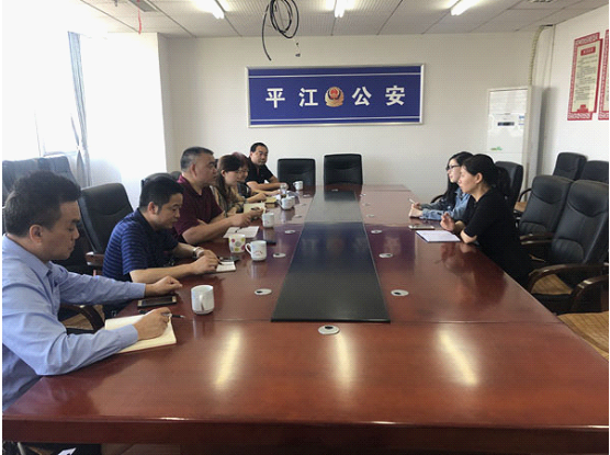 近日,湘阴县公安局警务保障室、巡特警大队、城关派出所等单位一行7人到平江县公安局交流警务保障工作。县公安局副局长王槐欣、警保室主任王洪波以及警保室全体民警一同参加交流会议。