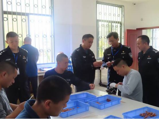 检查组一行到戒毒室,询问了戒毒人员日常管理情况,清查了戒毒人员生活物品,查看了戒毒人员劳动生产项目的场地,并仔细询问了生产流程、材料来源等。随后在总监控室查看了全所戒毒人员管理情况和民警规范执法情况。