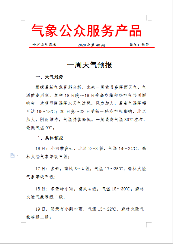 一周天气预报2020年第48期