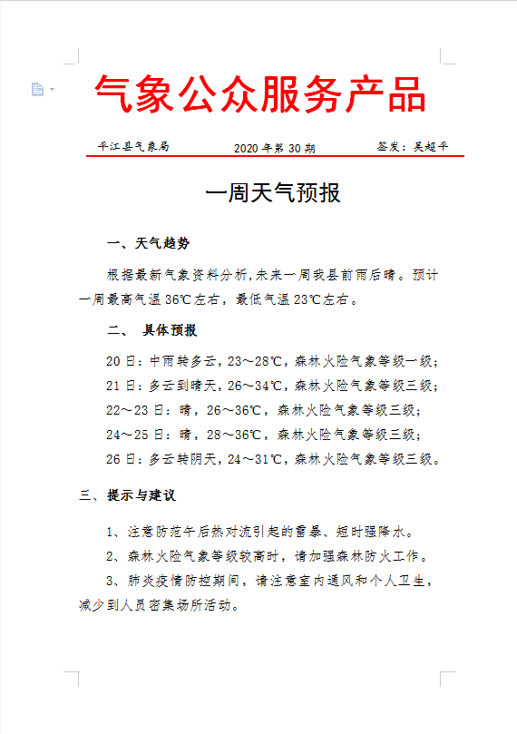 一周天气预报2020年第30期