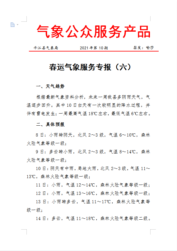 一周天气预报2021年第10期