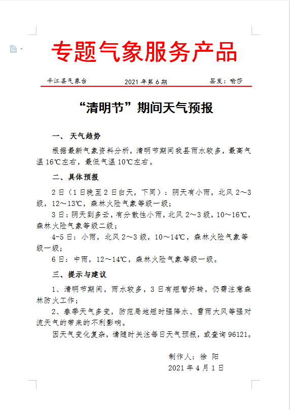 专题气象服务产品2021年第6期