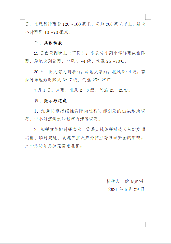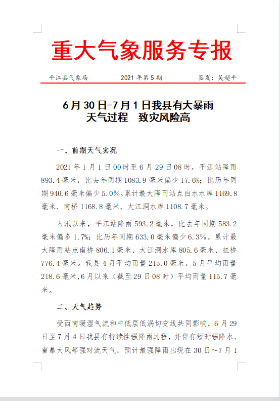 重大气象服务专报第5期