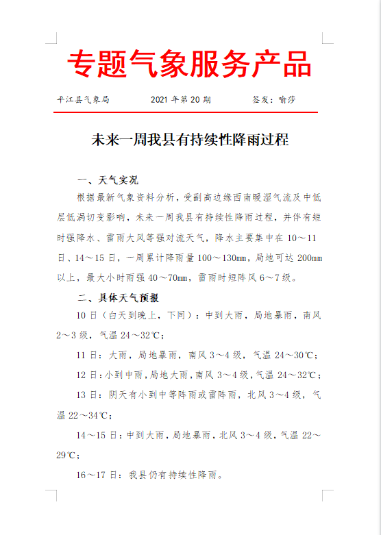 专题气象服务产品2021年第20期