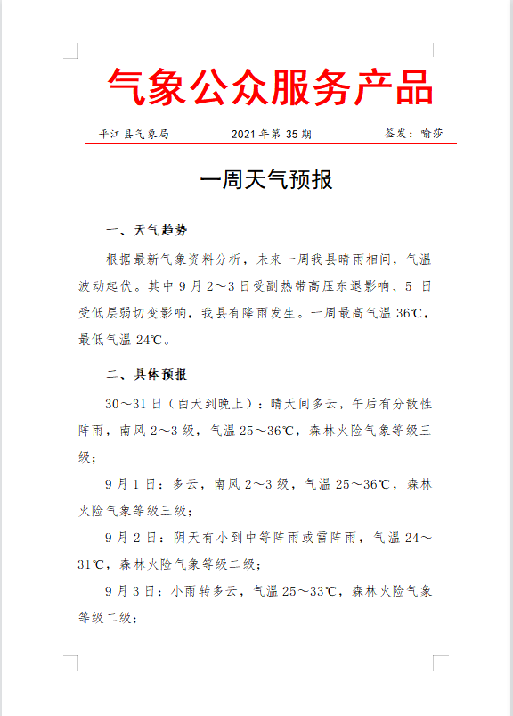 一周天气预报2021年第35期