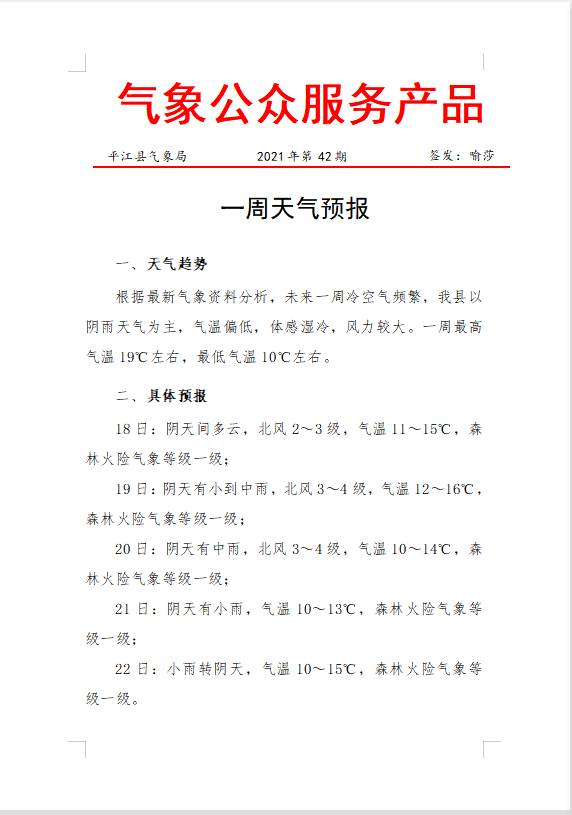 一周天气预报2021年第42期