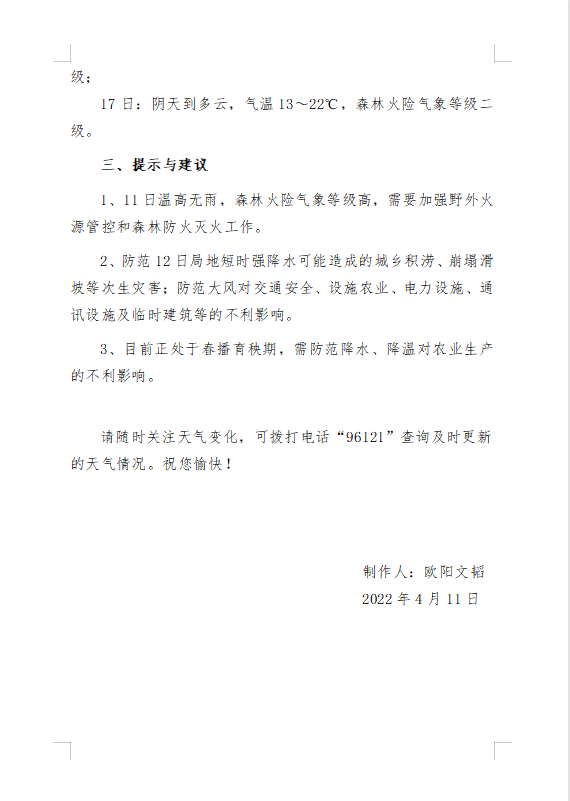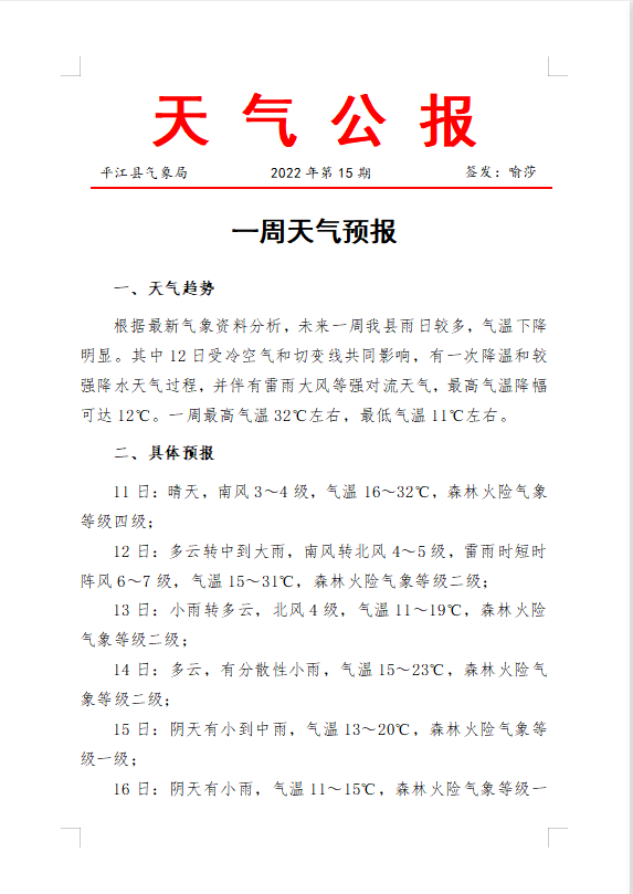 一周天气预报2022年第15期
