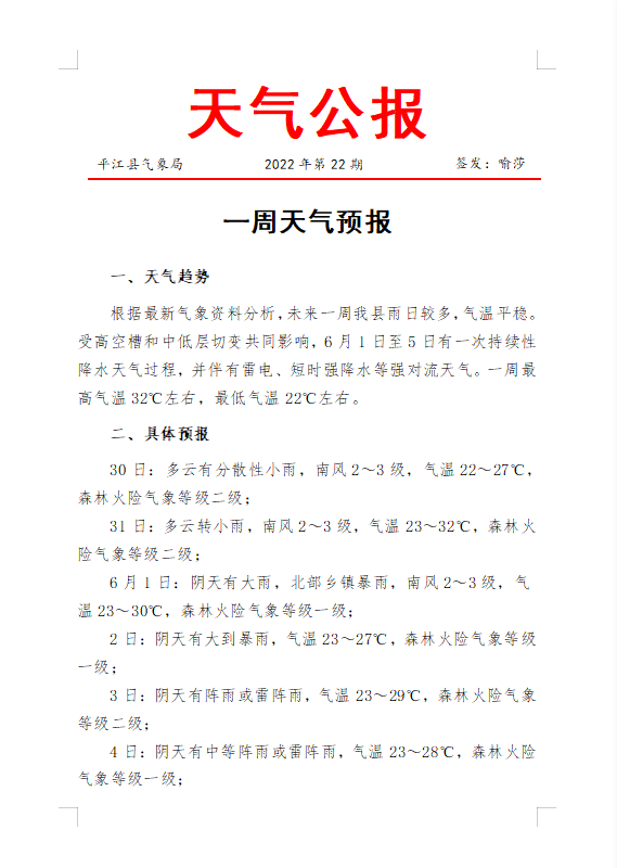 一周天气预报2022年第22期