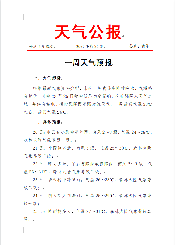 一周天气预报2022年第25期