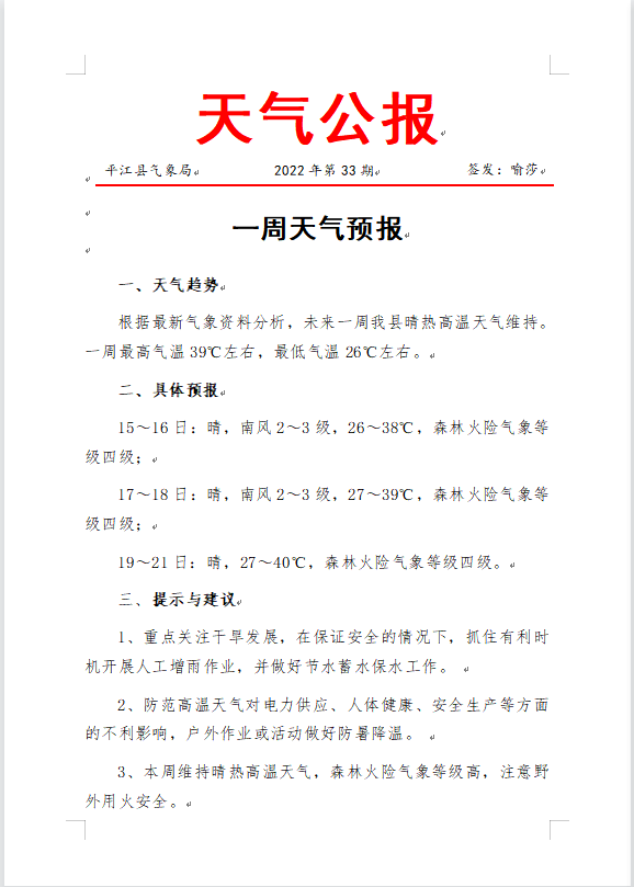一周天气预报2022年第33期