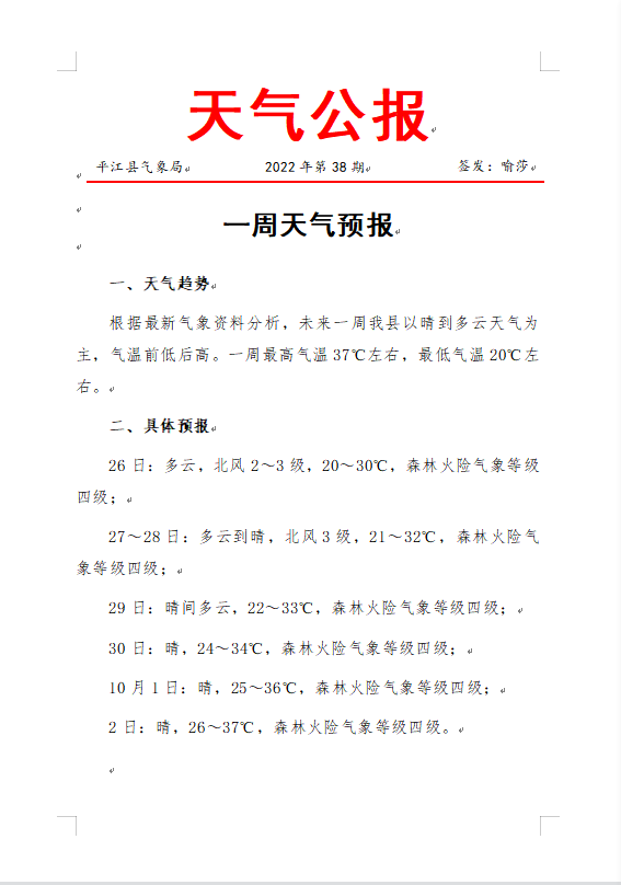 一周天气预报2022年第38期