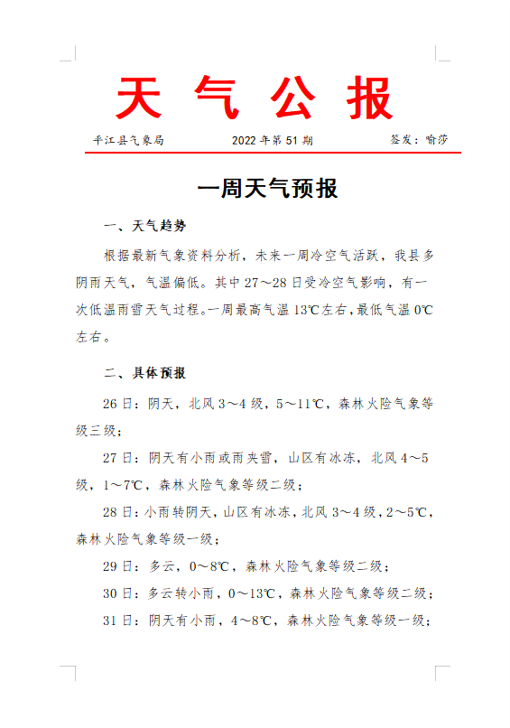 一周天气预报2022年第51期