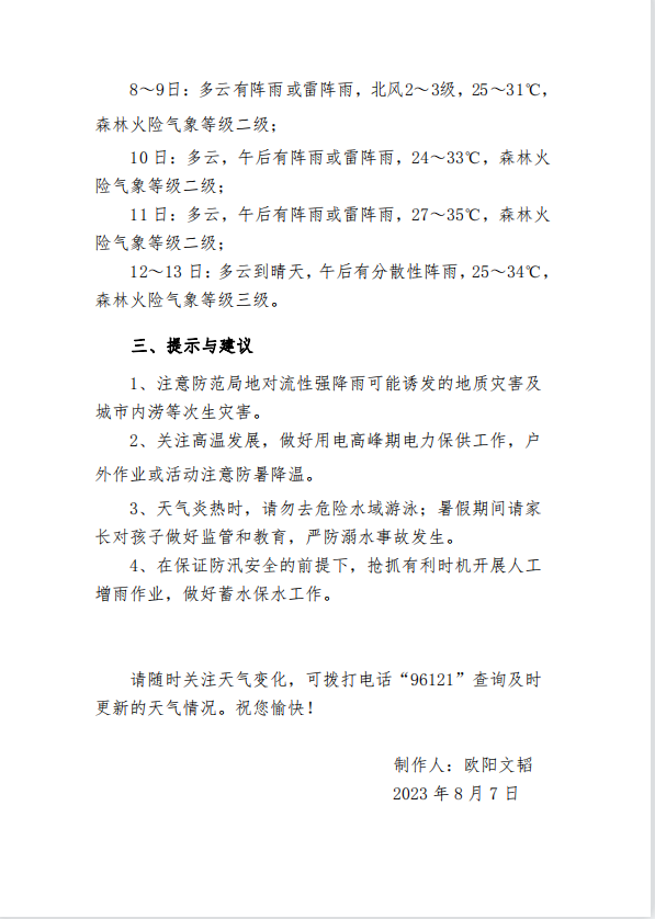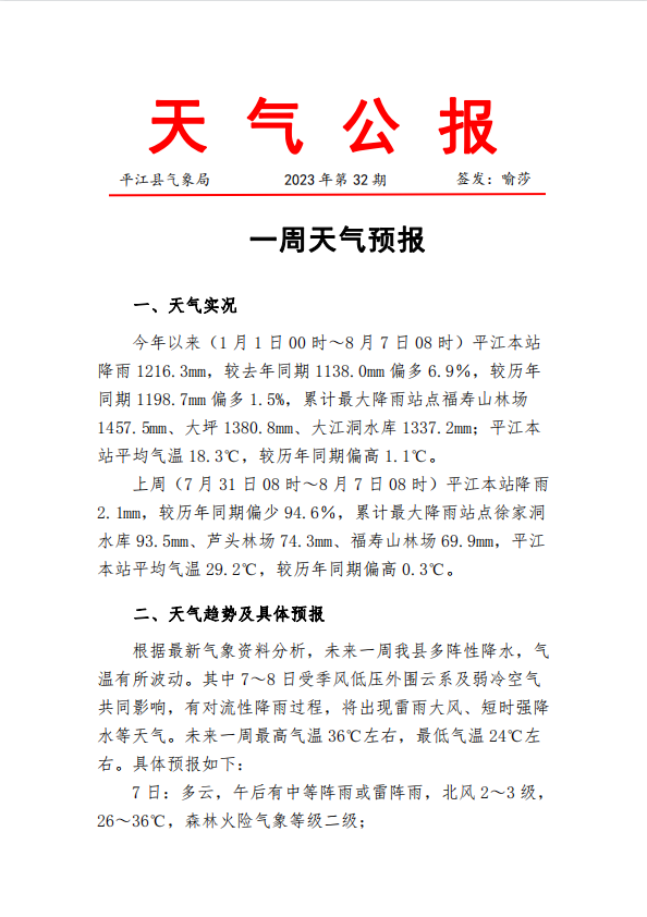 一周天气预报2023年第32期