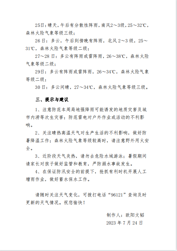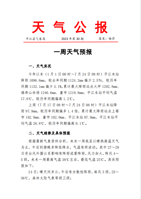 一周天气预报2023年第30期