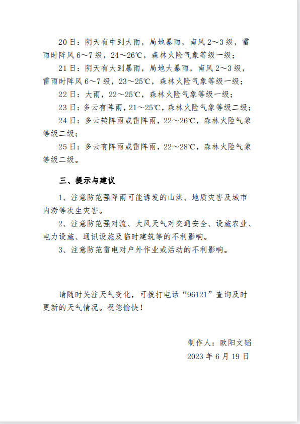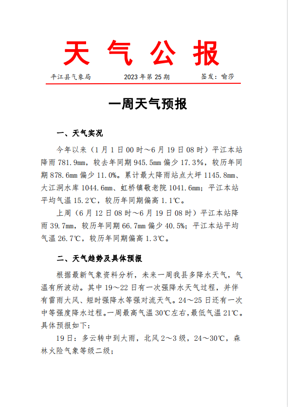 一周天气预报2023年第25期