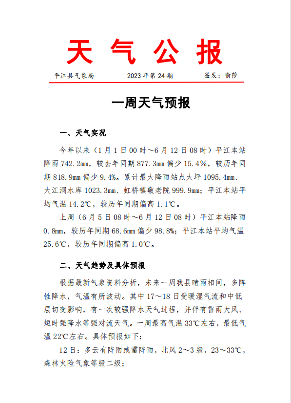 一周天气预报2023年第24期
