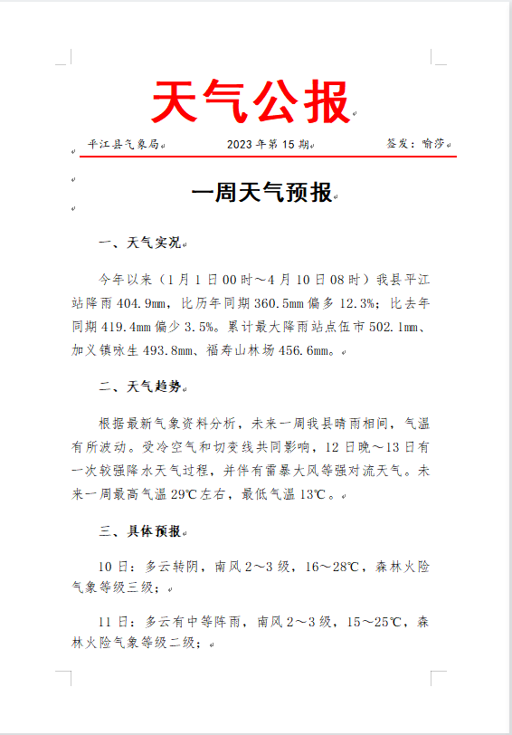 一周天气预报2023年第15期