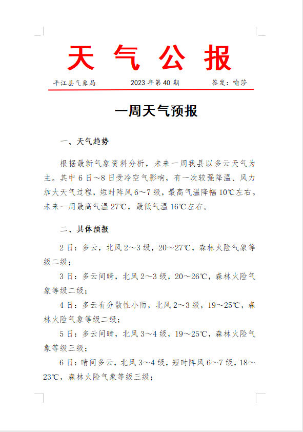 一周天气预报2023年第40期
