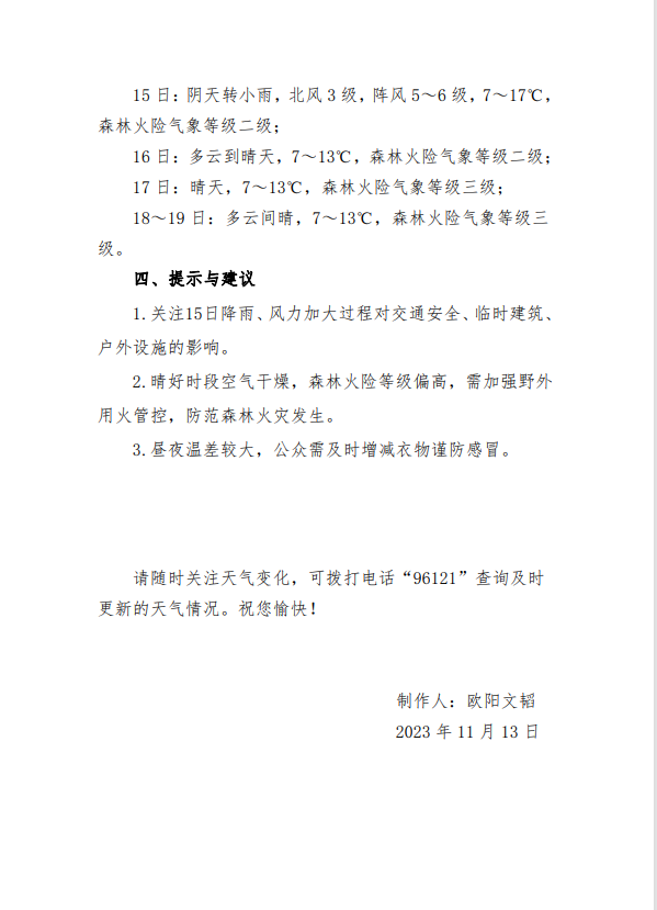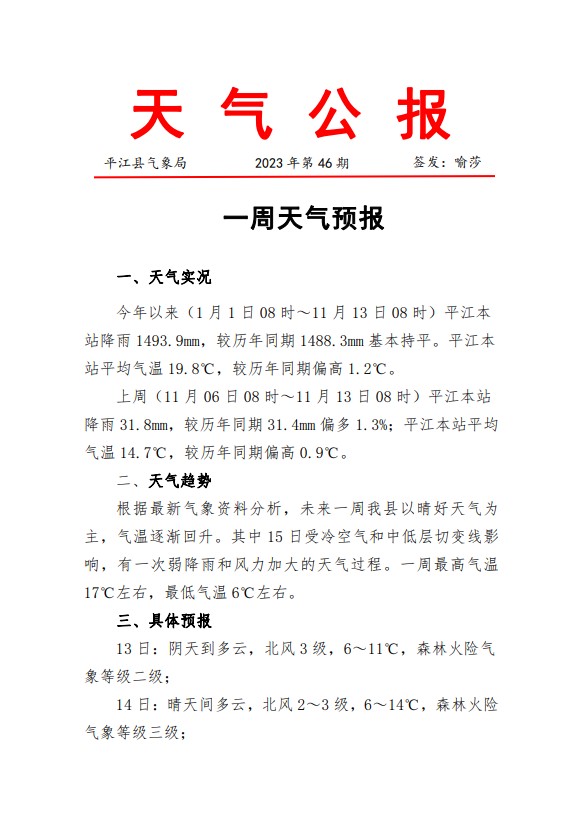 一周天气预报2023年第46期