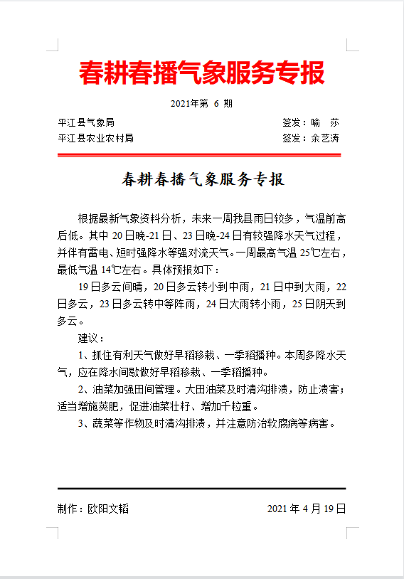 春耕春播气象服务专报2021年第6期