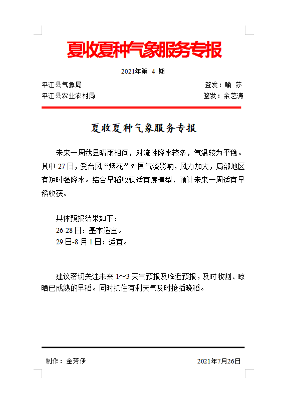 夏收夏种气象服务专报2021年第4期