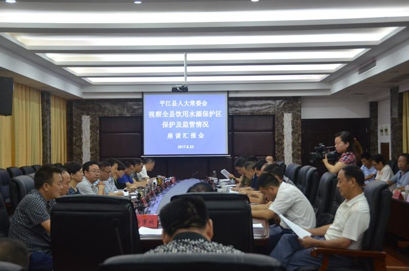 通过实地调研后,随即召开“平江县人大常委会视察全县饮用水源保护及监管情况座谈汇报会”,在听取县水务局、环保局、林业局、长寿镇、童市镇、自来水公司等单位负责人关于水源保护工作汇报后,委员代表们对各部门水源保护工作进行了综合点评。会议对政府重视、部门担责、人员履责等相关情况作出高度的评价,并就如何进一步加强水源保护工作提出三点要求:一是饮用水源保护首战告捷,取得了阶段性成果。二是饮用水源保护刻不容缓,情况不容乐观。三是饮用水源保护须持续发力,整合资源,健全监管,大力加强两大库区水源保护工作,确保全县人民喝上放心水、优质水。