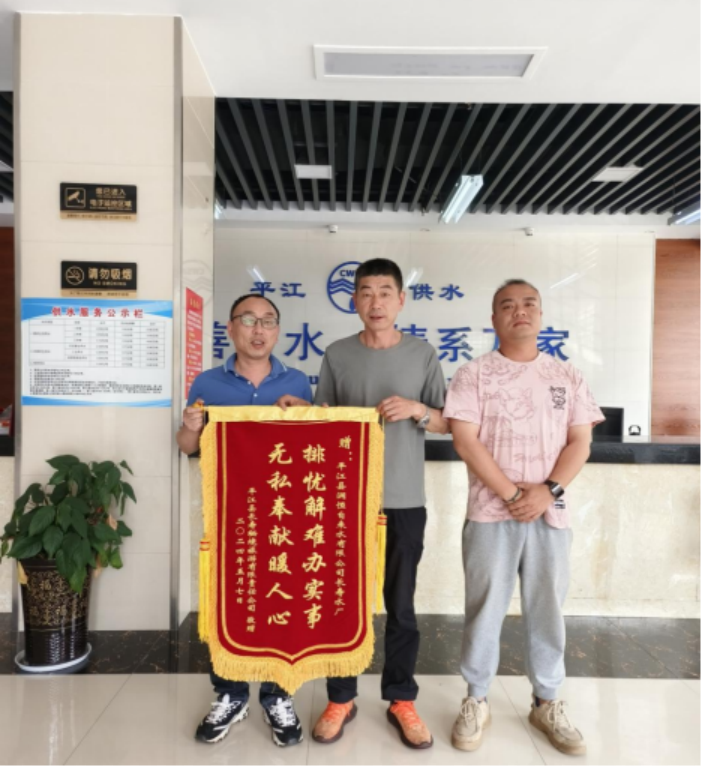 长寿水厂负责人表示,景区赠送锦旗是对水厂工作的一份信任和肯定,也是激励与鞭策。服务没有最好只有更好,在今后的工作中,水厂将继续秉持全心全意为用户服务的宗旨,切实当好企业“水管家”、用户“水保姆”,加强与企业沟通联系,及时了解企业的用水需求,积极解决用水难题,进一步提升企业和群众办事的便利度、满意度和获得感。