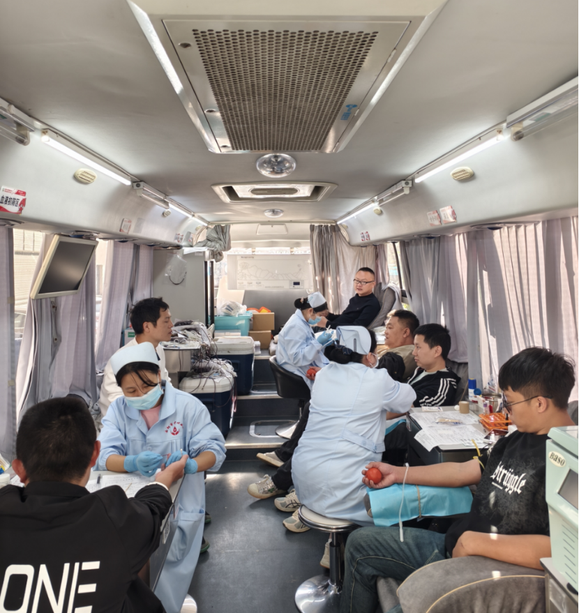 活动现场,气氛热烈而温馨。干部职工们踊跃参与,纷纷登上采血车,与医护人员默契配合,细致填写献血信息,依次进行血压测量、血样采集和身体检查,主动挽起衣袖,伸出手臂,让满载爱心的血液缓缓充盈储血袋。此次无偿献血活动共有42名干部职工参与,总献血量达到了12600毫升。