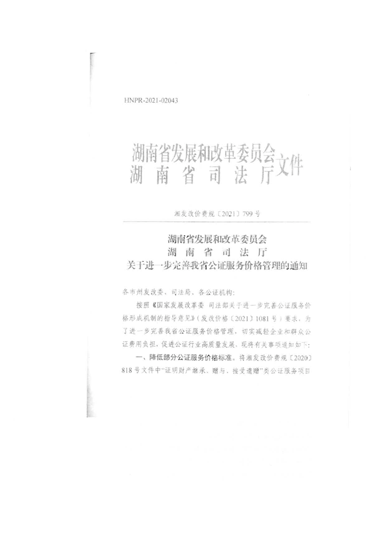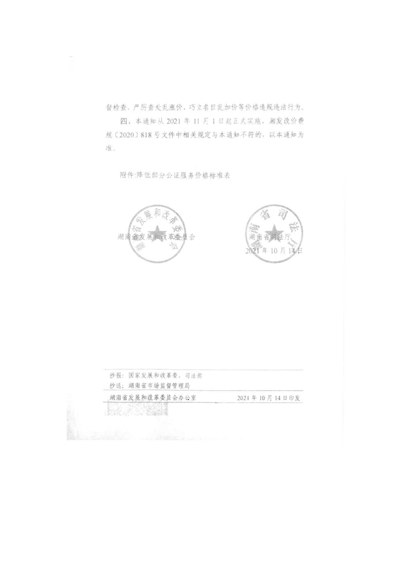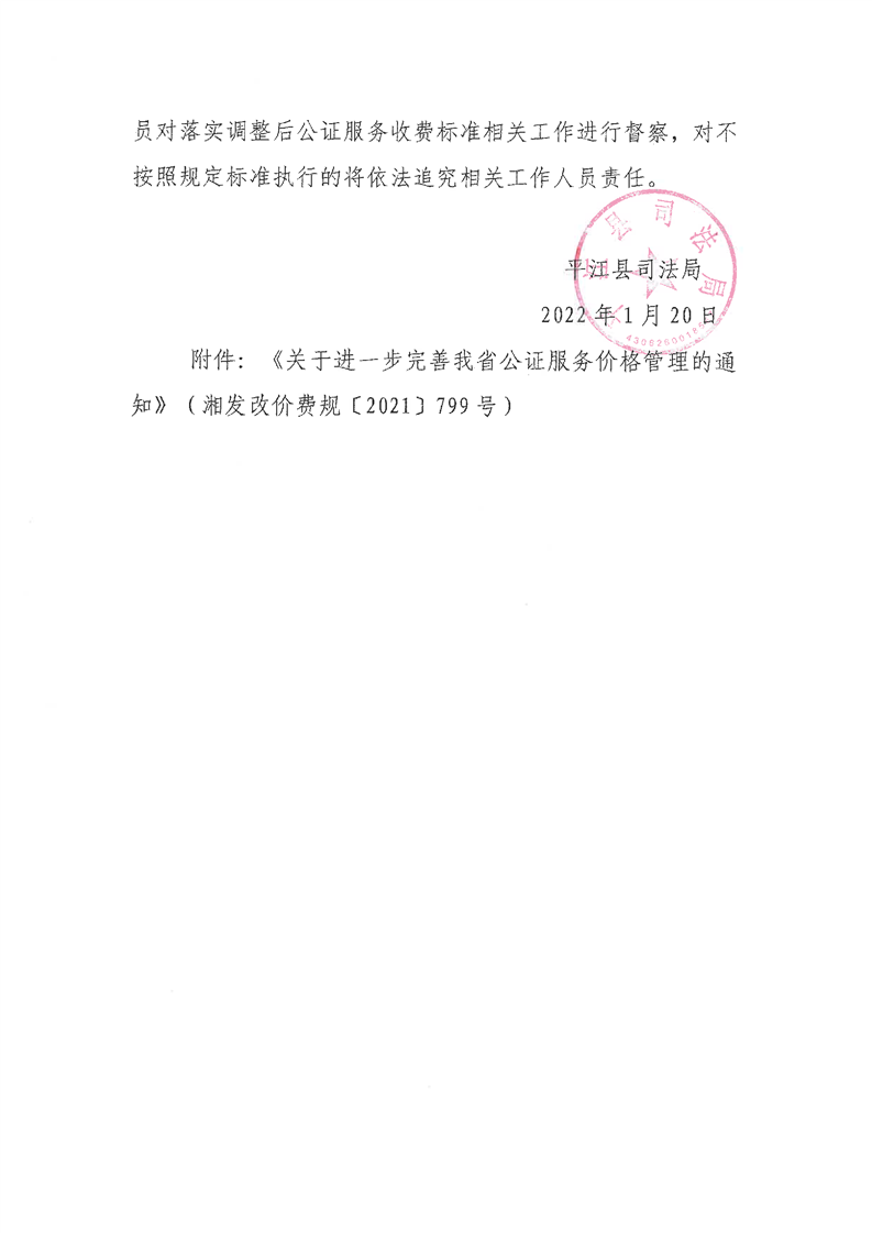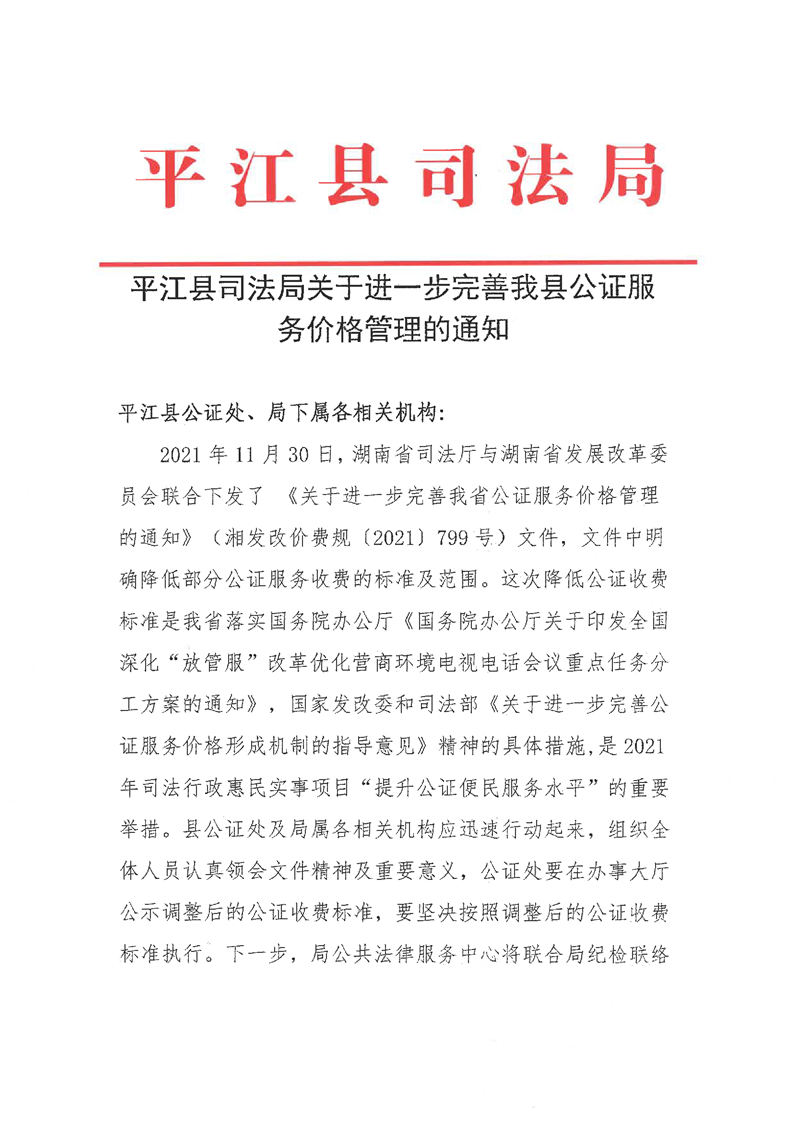 平江县司法局关于进一步完善我县公证服务价格管理的通知